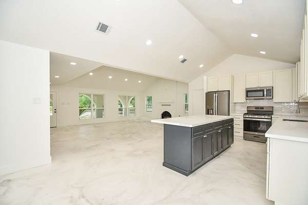 - Fireplace, Granite Counters, High Ceilings, Quartz Counters
