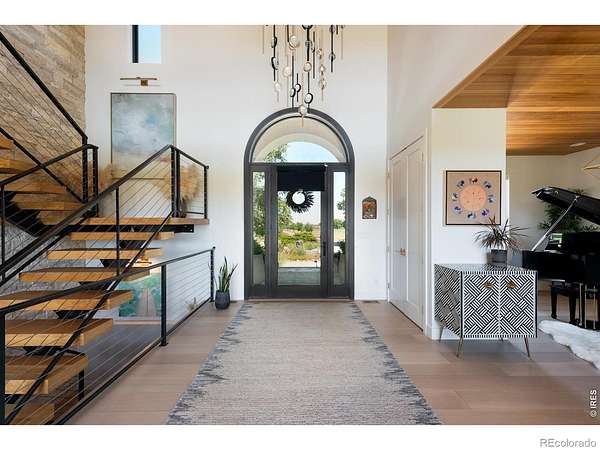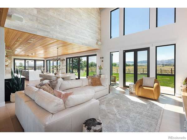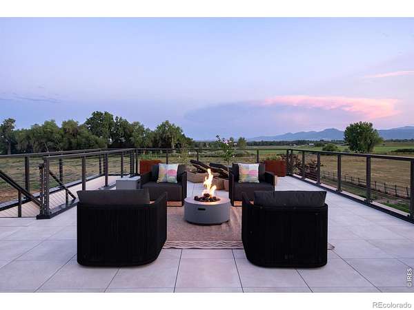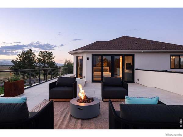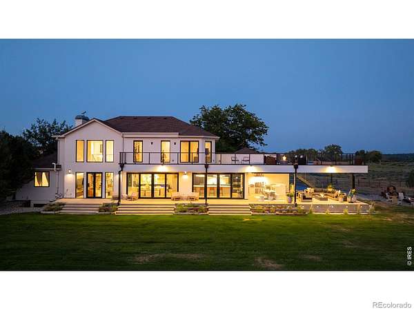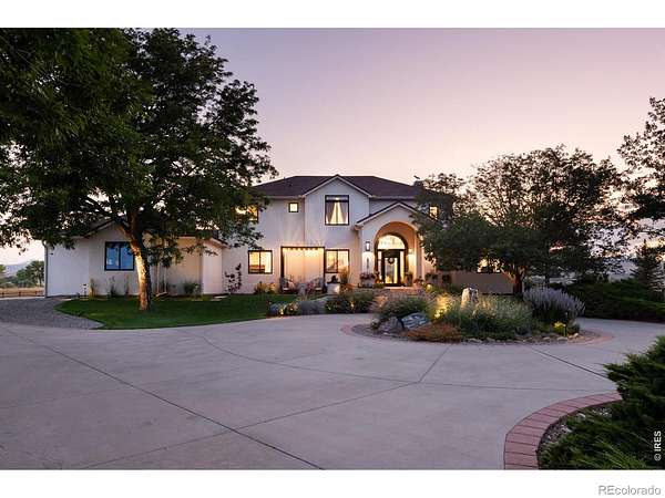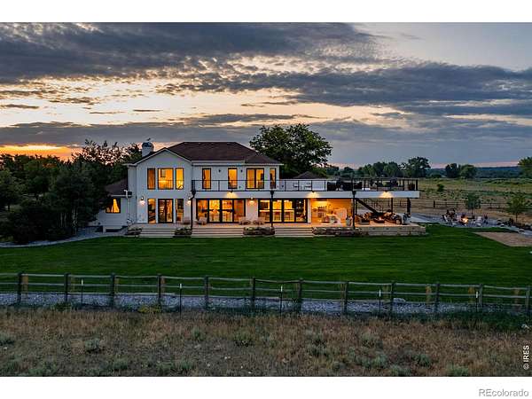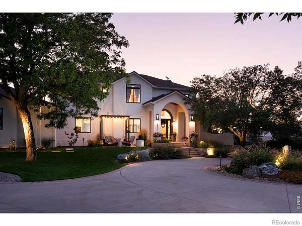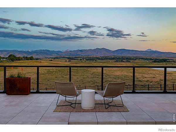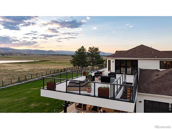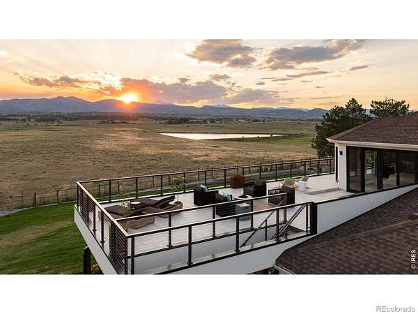 Only minutes from downtown Boulder! Majestic views and nature abound in this completely renovated 6BD/5BA residence. Designed to capture its idyllic setting, the home features two expansive levels of outdoor living and sophisticated interiors, all set on a park-like 1.6-acre lot surrounded by conservation easements and commanding front range views. Inside the timeless 5,688SF home, contemporary finishes join warm organic materials, including wide-plank oak floors, hemlock paneling and swaths of stone. A double-height foyer flanked by a chic sitting room and a large study flows to a massive great room with unimpeded mountain views. Relax alongside the living room's linear fireplace, plan your next dinner party in the inviting dining room, and enjoy a gourmet open kitchen with upscale appliances and an oversized waterfall island/breakfast bar. A pantry and oversized mudroom/laundry with a pet wash add convenience. Oversized sliders open the great room to the wraparound covered patio with a fully equipped summer kitchen for seamless indoor-outdoor living overlooking rolling lawns, endless front range views and fire pit area. The home's luxurious accommodations begin on the main level with 2 spacious secondary bedrooms that share a 3/4 bath. Above, the expansive owner's suite opens to an oversized deck perfect for morning coffee or dinner drinks. A custom walk-in closet and a serene en suite spa bathroom complete the primary suite. A well-appointed guest suite on the upper floor, and the finished lower level includes two more bedrooms and full bath alongside a rec room and storage/future wine cellar. A landscaped motor court and attached 3 car garage provide ample parking. Surrounded by vast open space, trails and Lagerman Reservoir - this is a true birder's paradise visited by eagles, osprey, owls and herons. Zoned for top-rated St. Vrain Valley Schools with amenities just minutes away and Pearl Street/Downtown Boulder 15 min from your door. You can truly have it all!