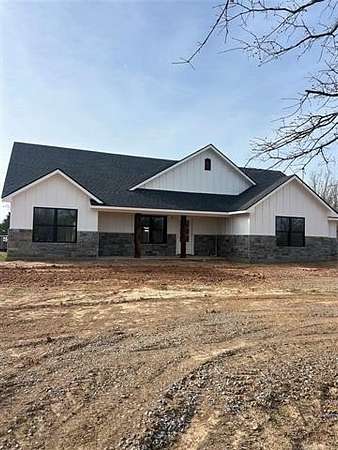 Brand-new construction on 4 beautiful acres with a pond! This newly built 3-bedroom, 2-bath home offers modern comfort in a peaceful setting, complete with a welcoming covered front porch and a spacious covered back patio perfect for enjoying the views. Inside, you'll find an open layout, quality finishes, and plenty of natural light throughout. The property includes a 2-car garage and ample room to spread out, garden, or simply relax in the serene surroundings. Conveniently located near the Texas border and just minutes from the Choctaw Casino & Headquarters, this home combines country living with easy access to top local amenities. A must-see property for anyone seeking space, privacy, and a fresh start in a brand-new home!