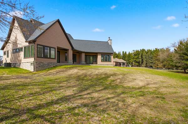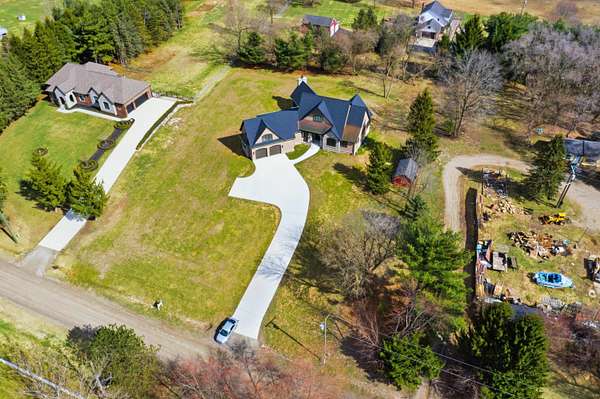 Welcome to this stunning custom-built ranch in Bruce Township, nestled on 2.07 serene acres within the award-winning Romeo School District. Thoughtfully designed with 10-foot ceilings, solid 8-foot doors, oversized windows, and beautiful hardwood floors throughout, this home offers an open, light-filled layout perfect for everyday living and entertaining. The chef's kitchen features quartz countertops, GE Profile appliances, custom cabinetry, and ample prep space. A vaulted dining area leads to the inviting four-season porch with fireplace, grill prep area, and access to the outdoor patio for year-round enjoyment. The primary suite is a private retreat with reading nook, patio access, spa-like bath with heated floors, dual vanities, tiled shower, soaking tub, and spacious walk-in closet. Two additional bedrooms share a Jack-and-Jill bath with private patio access. Includes Trane zoned HVAC for comfort and efficiency. Additional features include a whole-house generator system, 75-gallon water heater, spacious laundry and mudroom, and a versatile office/den that can easily serve as a fourth bedroom. The oversized garage provides ample storage and workspace. Distinctive exterior details include a priceless copper chimney cap and three sections of elegant copper roofing. The home also offers a full 9-foot basement ready for finishing, providing endless possibilities for additional living space. The seller will consider an allowance to complete the second-floor 400 sq ft bonus room featuring a dramatic 13-foot cathedral ceiling. Move-in ready and complete with a home warranty, this exceptional property truly blends luxury, comfort, and peaceful country living.