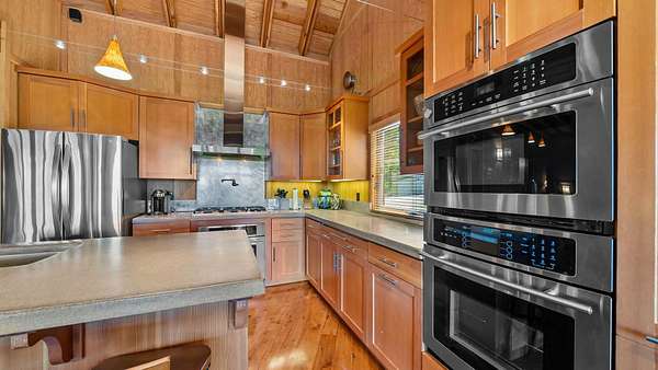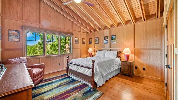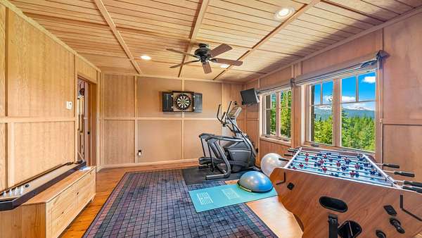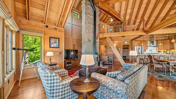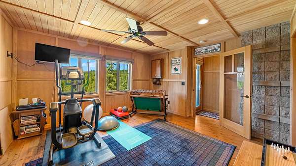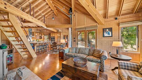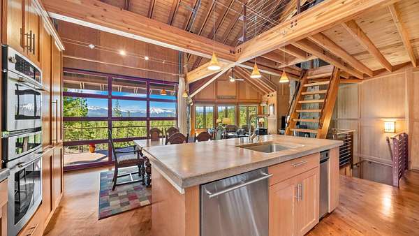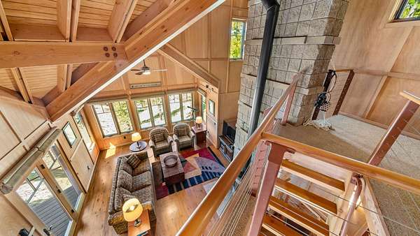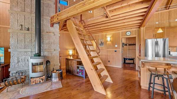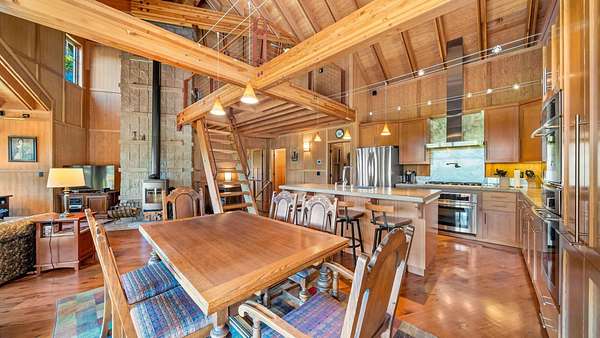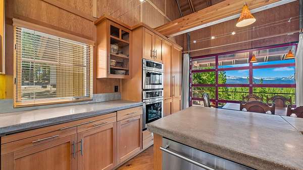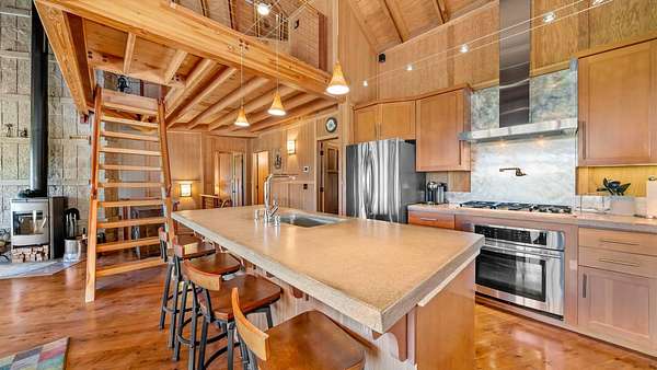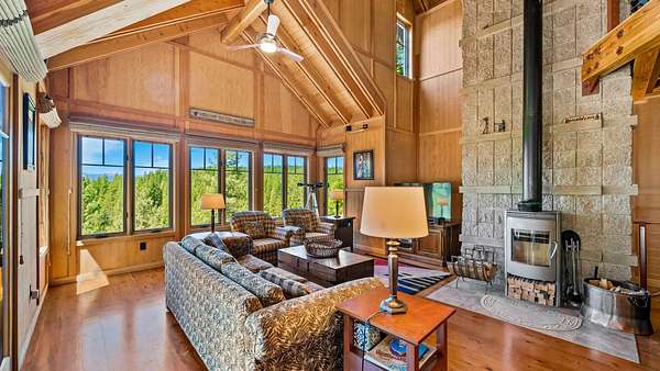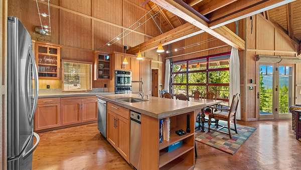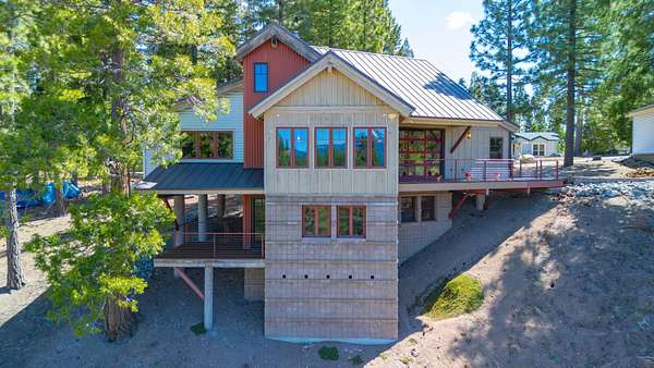 DESIGN. EXECUTE. EMBRACE....PERFECTION! This one of a kind, EXCEPTIONAL MOUNTAIN MODERN CABIN is a true GIFT and the perfect Get A-Way! With uninhibited views of Eureka Peak and the Sleeping Indian.... just Open the customized GARAGE DOOR (yes!) .... step out onto the Trex deck and you will BELIEVE. Yes, this is Heaven. Owner/designer is highly accredited Architect and his love of the area, the land and this home is evident in every design, angle, stone and attention to detail. Playful, functional, comfortable.... all were thought out thoroughly. Modern Cabin fell enjoys the main level living space with windows to soak in the natural light AND the VIEW! "Rais" wood stove makes for comfortable heat - BUT the Radiant heated floors will really keep you toasty. Unique system with Boiler Unit heats the water and radiants throughout the home. Modern KITCHEN with polished concrete counter tops, Dacor Cooktop, Porcelain Tile and Granite Tile.... Just open up that beautiful Garage Door and your entertaining experience just became GRAND! Two bedrooms and one & one-half bath are on this level..... as you go Downstairs, the Work Out Room/Game could also serve as a third bedroom, and the Primary Suite with full Bath is private and exclusive. Third Level is a Loft space, for any need you could imagine! Did I mention the CLIMBING WALL? YUP! Complete with the rigging. Grandkids will LOVE this. Detached two car GARAGE also has a half Bath. The entire 2.76 ACRES is your playground, your Vistas and your Tranquility. Come see and you will be impressed!