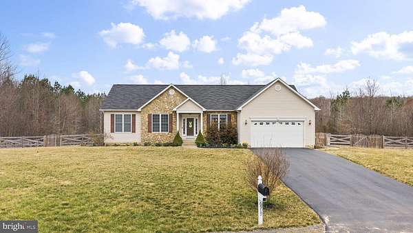 Welcome to this beautiful one-level home with a full walkout basement, perfectly situated at the end of a quiet cul-de-sac on 7.84 acres, offering privacy, space, and a peaceful setting. The main level features 2,229 square feet of thoughtfully designed living space, including a spacious layout with comfortable living areas and well-sized bedrooms. The kitchen is a standout with granite countertops and soft-close cabinetry, providing both style and functionality for everyday living and entertaining. The home offers four bedrooms and three full bathrooms, with the primary living spaces located on the main level. The fully finished walkout basement adds another 2,229 square feet, creating an incredible amount of additional space. The basement includes one bedroom and one full bathroom and features a large open area that feels incredibly spacious-perfect for a recreation room, media room, guest space, or additional living area. A two-car garage provides convenience and storage, while the expansive 7.84-acre property offers plenty of room to enjoy the outdoors, explore, or simply take in the privacy of the surrounding landscape. If you're looking for a home that offers generous square footage, modern kitchen finishes, and a private setting, this property is a must-see. Don't wait long , Make your appointment today