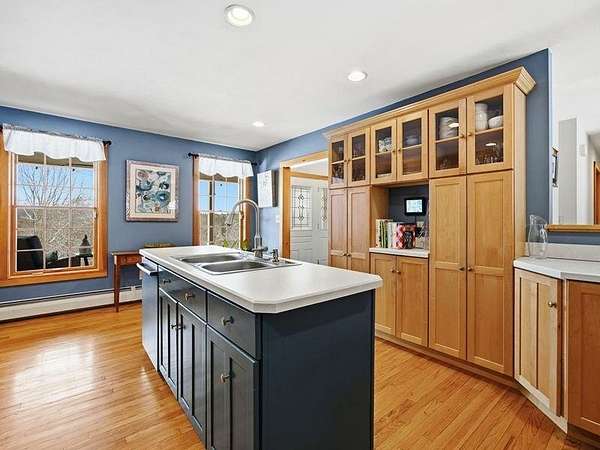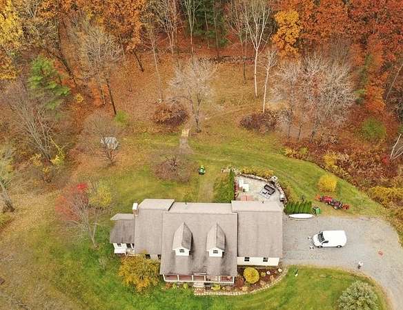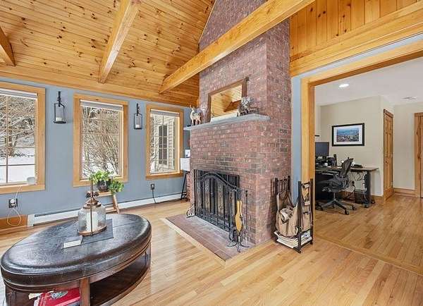 Set on just over 5 acres with distant mountain views, this high-quality custom-built 3-bedroom, 2-bath Cape offers privacy, comfort, and room to grow in the scenic town of Surry, NH. Less than 10 minutes from downtown Keene, the property provides convenient access to schools, shopping, dining, and everyday amenities—while benefiting from low property taxes in Surry. A welcoming farmer’s porch offers a relaxing place to enjoy the peaceful surroundings. Inside, the thoughtfully designed home features beautiful maple flooring and a warm layout. The kitchen includes a center island, deep pantry cabinet, coffee bar, abundant cabinetry, and newer appliances, flowing easily into the dining area where large windows overlook the backyard. The living room is warmed by a pellet stove and offers a cozy place to relax while enjoying views of the property, where deer, turkeys, birds, and other wildlife! The primary suite includes a private bath with tile flooring, double vanity, and crown molding, while two additional bedrooms provide flexible space for guests, a home office perhaps. A highlight of the home is the spacious family room featuring a beautiful fireplace, vaulted ceiling, and wraparound windows that fill the space with natural light and showcase the surrounding landscape. Outdoor living is equally inviting with a custom bluestone patio, stone wall, and fireplace—perfect for relaxing or entertaining. A new five-person hot tub overlooks the private backyard, which also offers great gardening space and a charming custom-built chicken coop. The walk-out basement with pellet stove provides generous storage and potential for additional finished space. Above the main level, an expansive unfinished second floor offers excellent future possibilities for a recreation room, studio, or additional living area. Combining peaceful rural surroundings, quality craftsmanship, and close proximity to Keene. Property has been pre-inspected and is turn-key!