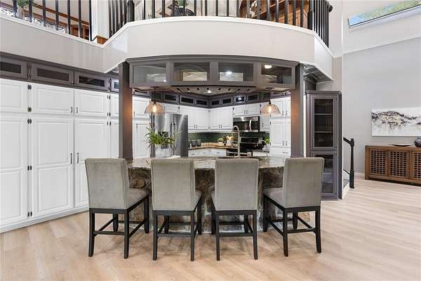 - Built-In Features, Cathedral Ceiling(s), Decorative Lighting, Eat-In Kitchen, Elevator, Granite Counters, In-Law Suite Floorplan, Kitchen Island, Loft, Multiple Staircases, Open Floorplan, Pantry, Second Primary Bedroom, Vaulted Ceiling(s), Walk-In Closet(s), Wet Bar