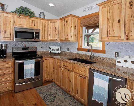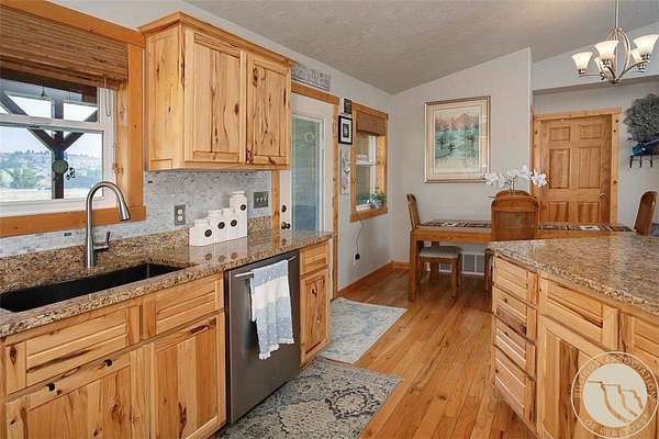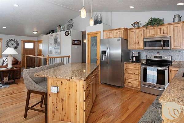 Enjoy breathtaking views of the Beartooth Mountains from this 2+ acre property with a strong well and plenty of space to make it your own. The home offers convenient main-floor living plus a full unfinished basement, giving you endless possibilities-finish it to add living space, bedrooms and an additional bath (already plumbed and studded in), or keep it for storage. Inside, you'll find custom hickory cabinetry, hardwood floors and granite countertops. The spacious primary suite features a garden tub, separate shower, private water closet, and a roomy walk-in closet, with the laundry conveniently nearby. Outside, there's ample room for a future shop, RV parking or simply relaxing and soaking in the views.