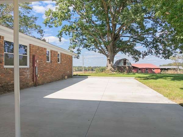Brick home in the Heart of Holladay Tennessee. This home is located 100 miles West of Nashville and 54 Miles East of Jackson TN. The home has been renovated in 2025 with New Roof on the house & Outbuilding, New Blacktopped Driveway, New concrete patio 20x 42, New Windows, New Flooring, New Paint, New Kitchen Cabinets, Countertops, stainless steel appliances,( sink, dishwasher, microwave, range and refrigerator, New Light Fixtures & Ceiling Fans, New Hall Bath with tub w/ tile surround, vanity and toilet. New Master Bath w/ Tile Walk-in Shower, Custom Vanity and toilet, New insulation on the HVAC in the basement, The Basement has a NO LEAK warrant from AFS in Nashville TN has a built in drain system. The home sets on 3.2 unrestricted Acres that is level with New Sod in part of the back yard. The property has city water, natural gas available, septic, 3 Pecan Trees, 3 Black Walnut Trees , 2 Peach Trees and Oak Shade Trees. This home is a short drive to the TN River/Ky Lake and State Park