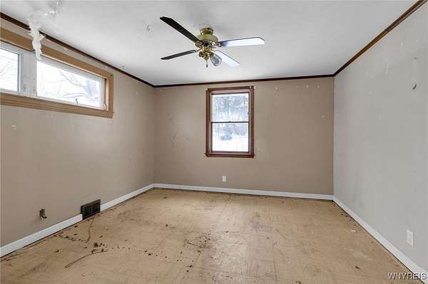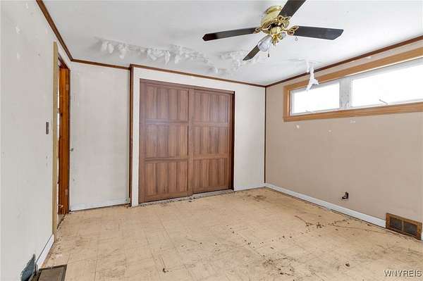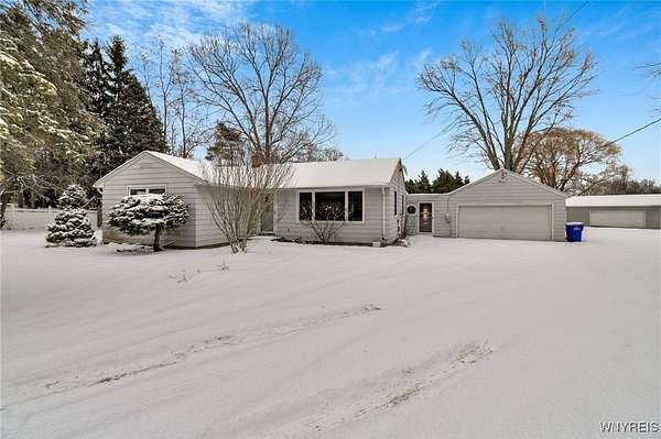Set on nearly 3 picturesque acres in the highly sought-after Starpoint School District, this Ranch offers a rare combination of land, location and long-term upside. The serene, park-like setting features mature trees and wooded area creating a peaceful backdrop that truly define the property's value, plus a second garage/barn - perfect for hobbies, storage or whatever your needs may be! While the home requires work, the existing layout provides a solid foundation w/tremendous potential to create something truly special. Inside, the kitchen offers ample cabinetry and a peninsula, which helps define the dining room space. A large picture window anchors the living room and provides abundant natural light throughout the main living areas. The home includes three bedrooms plus a primary suite, w/the primary offering a walk-in closet and private full bath. An additional full bath is located off the main hallway. From the kitchen, you step into the three-season room, which features a sliding glass door leading to the deck, where the clearing transitions into a wooded area, giving the property a park-like feel. From the three-season room, there's a second entry into a tiled mudroom, which also connects the home to the attached garage. Exterior highlights include an architectural roof, partial fencing, and additional sheds, along w/a heated second garage/barn (40x24/960 SQ ft) w/a metal roof and separate electrical panel, providing space for multiple vehicles and/or equipment. This is a fantastic opportunity for an investor to capitalize on all that the property has to offer! The home and property are being sold as-is. Cash offers only. Showing begin immediately. Offers are due on Monday, 12/22 @ 12pm.