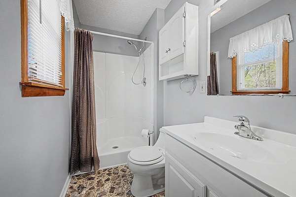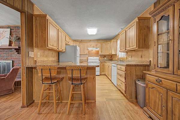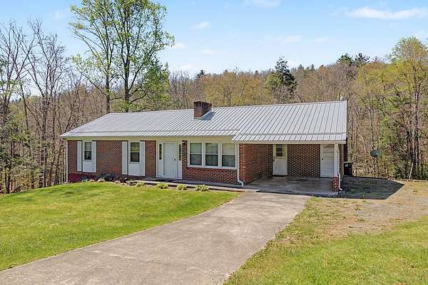 This solid brick ranch in Ivanhoe has been well cared for, serving as a church parsonage for the past 40 years. Sitting on just over 2 acres, the property offers a quiet setting with a beautiful creek running along the back and privacy on three sides thanks to its corner lot location. You're only about 20 minutes from Iron Mountain Horse Camp and just minutes from the Jefferson National Forest, giving you easy access to horseback riding, hiking, fishing, boating, and hunting right nearby. Inside, the home features laminated wood flooring, two wood-burning fireplaces, and a spacious kitchen with hickory cabinets and three Lazy Susans for practical storage. The kitchen was remodeled in 2018, and the roof has been replaced within the last 5 years, giving added peace of mind. The full basement has both interior and exterior access and includes a finished bonus room that works well for an office, guest space, or hobby room, with plenty of additional space to expand or store. The home also includes a heat pump for central heat and air, an attached carport, and all furnishings and appliances convey, making it ready for immediate use. Whether you're looking for a primary residence or a short-term rental opportunity like a VRBO, this property is set up to go. Located within roughly two hours of Roanoke, Blacksburg, Winston-Salem, and Greensboro, you can enjoy a slower pace without being too far from city conveniences.