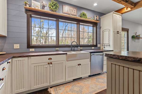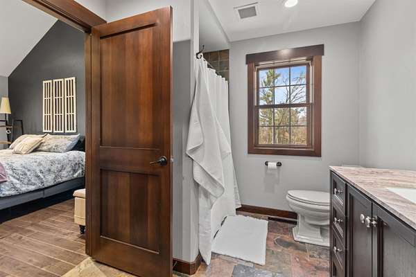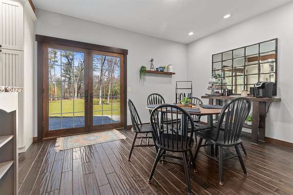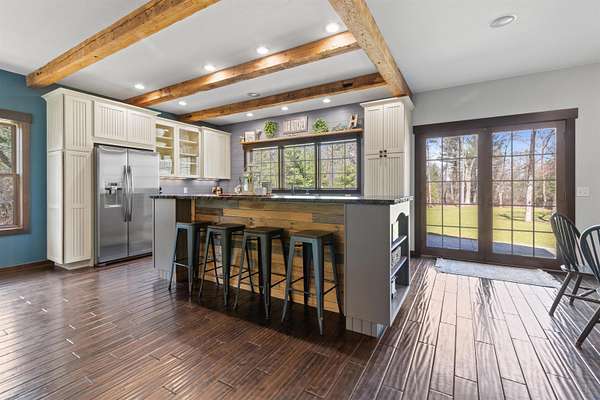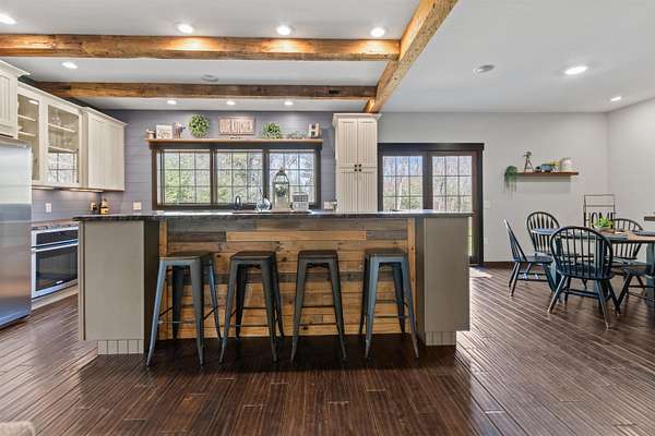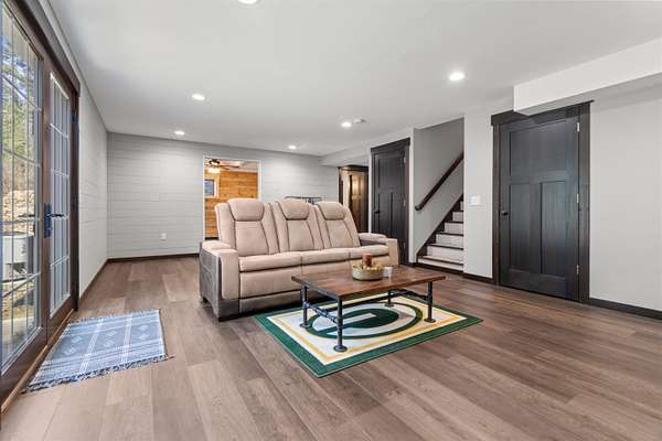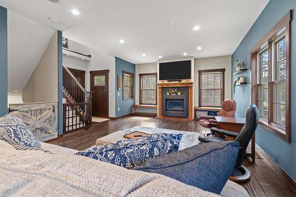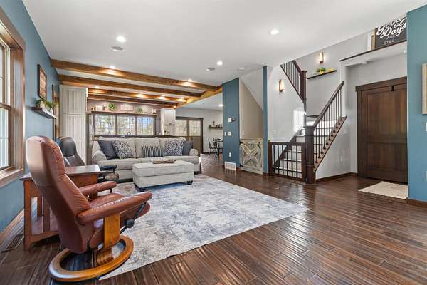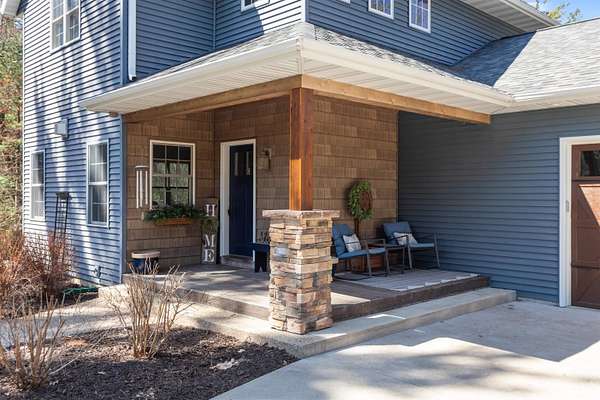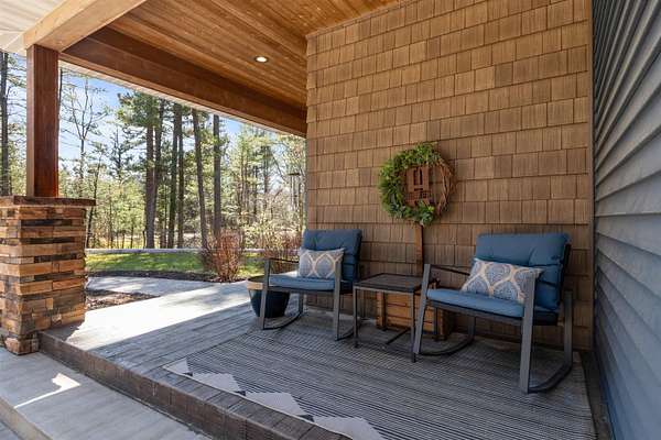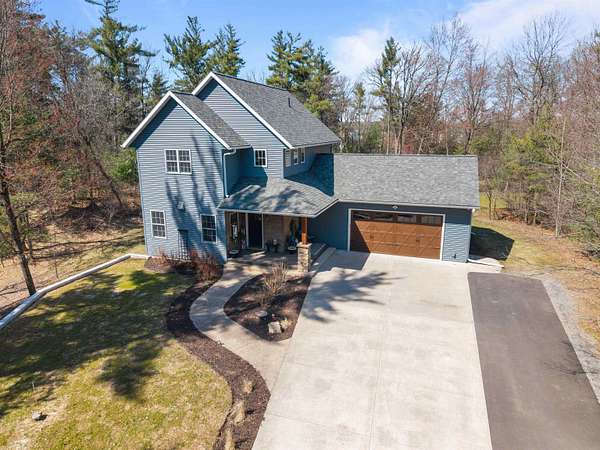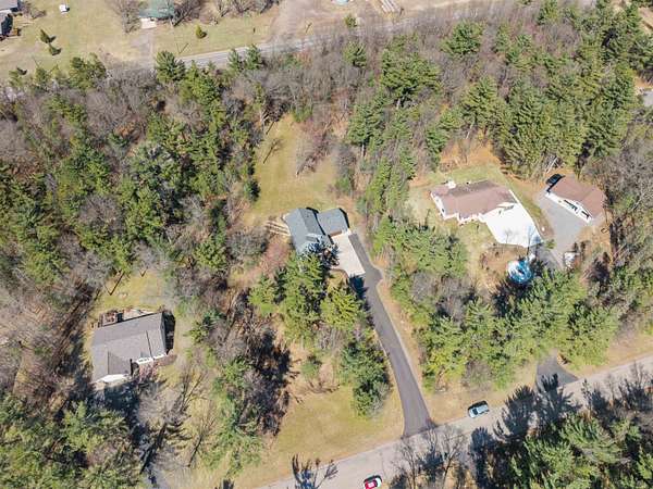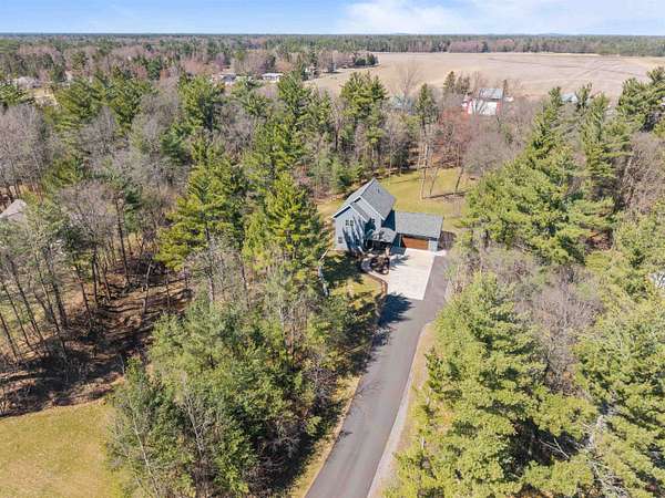 Welcome to 6921 Lisa Lane- a modern-built home on 1.72 tree-lined acres, where comfort meets serenity- just minutes from Lake Wazeecha and a short drive to Plover. Tucked away at the end of a long, freshly paved blacktop driveway, this beautifully designed home offers a peaceful retreat with high-end finishes and thoughtful craftsmanship throughout. From the moment you arrive, the inviting stamped concrete front porch with warm cedar accents sets the tone for whats inside. Step into the open-concept main level, where rich wood floors, abundant natural light, and striking beam-accented ceilings create a warm yet refined atmosphere. The spacious living room is anchored by a stunning gas fireplace with custom built-ins and surround sound- perfect for both relaxing nights in, as well as entertaining. The kitchen is a true centerpiece, featuring stainless steel appliances, custom concrete countertops, a large dining bar, and seamless flow into the dining area. Designed with both style and function in mind, it offers easy access to the pantry and opens directly to the stamped concrete patio- ideal for weekend cookouts. Main-floor laundry with front-loading washer and dryer, plus a half bath for added convenience. Upstairs, you will find the primary bedroom with vaulted ceilings, a luxurious ensuite bath complete with a multi-head tiled shower, and walk-in closet. Two additional bedrooms and a full bath provide comfortable space for family or guests. The walkout lower level expands your living space with a large family room, a fourth bedroom(sanitary sized for a 3BR home), and a full bath. Generator transfer switch provides peace of mind in a secluded setting. Surrounded by mature trees and natural beauty, this property offers the perfect balance of privacy and accessibility. Whether you're enjoying quiet mornings on the porch or hosting gatherings on the patio, this home delivers a lifestyle that’s both peaceful and connected. Experience the best of Central Wisconsin living at 6921 Lisa Lane- your private retreat awaits. Call today for your own private showing!
