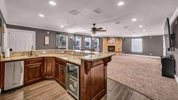 - Built-In Features, Decorative Lighting, Granite Counters, High Speed Internet Available, In-Law Suite Floorplan, Kitchen Island, Multiple Staircases, Pantry, Second Primary Bedroom, Sound System Wiring, Vaulted Ceiling(s), Wainscoting, Walk-In Closet(s), Wet Bar