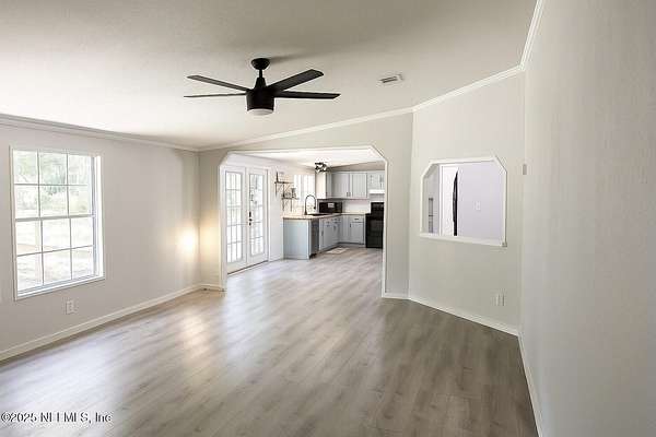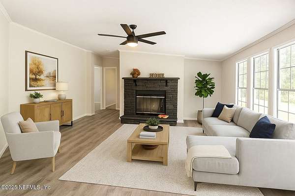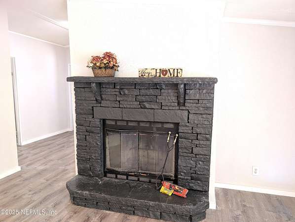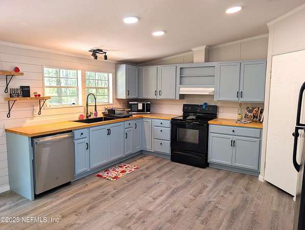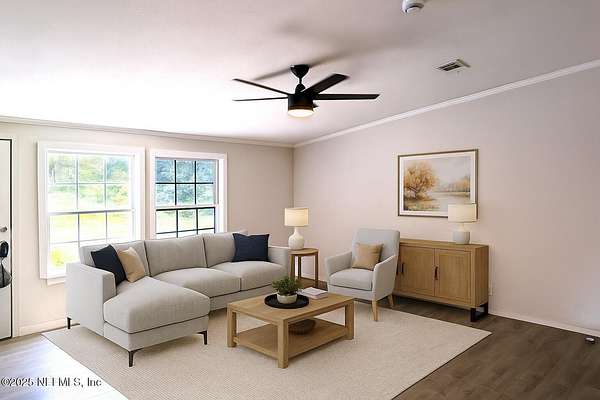 Welcome to your retreat in Keystone Heights! This spacious 4BR/2BA double-wide (2,310 sq ft) rests on partly cleared 5 acres of gated, partly fenced land-perfect for peaceful country living with room to roam. There are 3 tree stands in the back. There is room to park an RV or camping trailer. The seller will be adding electric at the end of the home for hook up. Recently refreshed, it boasts a brand-new roof (damaged plywood replaced),. With new gutters, carpet, and LED lights throughout. Safety sparkles with new fire alarms in every bedroom, all tied to the whole-house system. Fresh paint, knockdown ceilings/walls, updated baths, and a refurbished kitchen with all appliances stay. Practical perks abound: new well tank, whole-house water filter, hot water heater. Also new air conditioner, and duct-work-ensuring cool comfort year-round. With every upgrade thoughtfully done, this property is move-in ready and waiting to be the next chapter of your happily-ever-after!