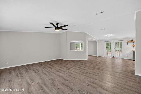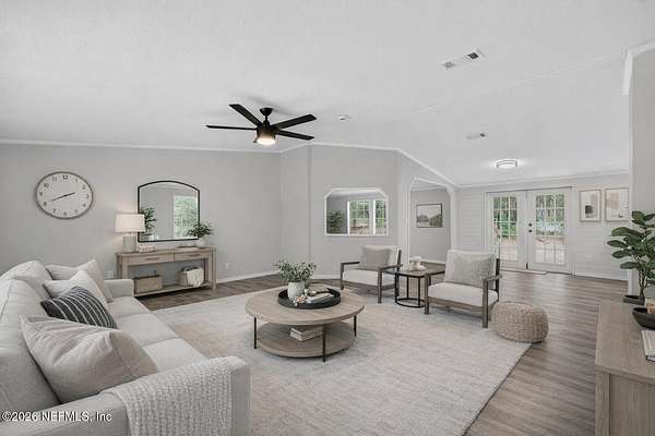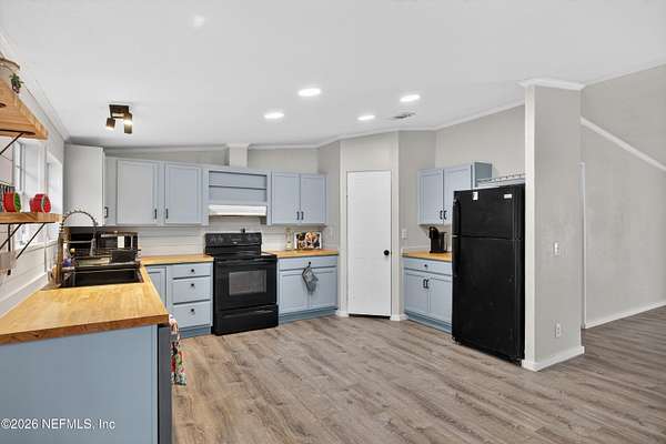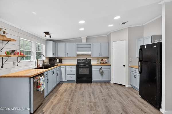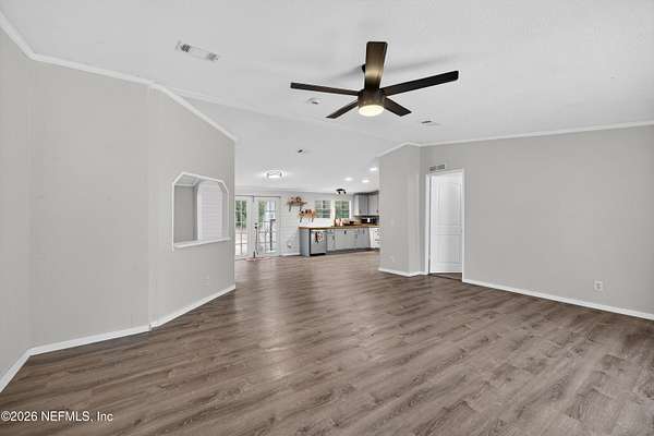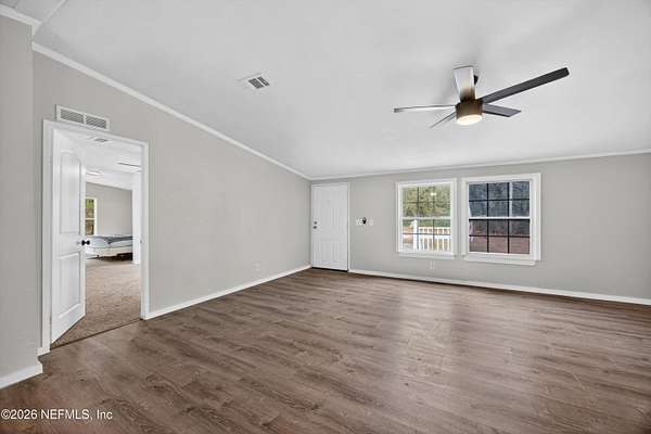 Welcome to your private retreat in Keystone Heights! This spacious 4-bedroom, 2-bath double-wide home offers 2,310 square feet of comfortable living on 5 partially cleared, gated, and partially fenced acres--perfect for peaceful country living with plenty of room to roam. There's even space to park an RV or camping trailer. Recently refreshed, this home features a brand-new roof with damaged plywood replaced, new gutters, new carpet, and LED lighting throughout. Safety and peace of mind are enhanced with new fire alarms in every bedroom, all connected to a whole-house system. Inside, you'll find fresh paint, knockdown ceilings and walls, updated bathrooms, and a refurbished kitchen where all appliances convey. Additional upgrades include a new well tank, whole-house water filtration system, hot water heater, and newly installed skirting. For year-round comfort, the home also boasts a new air conditioning system and duct-work. Also internet was just run down this street.