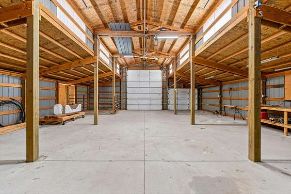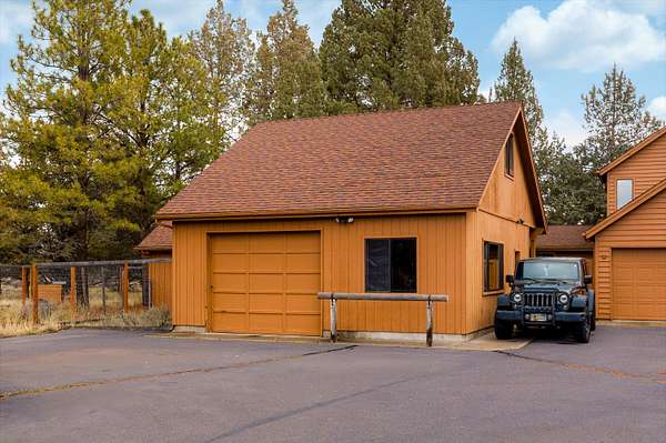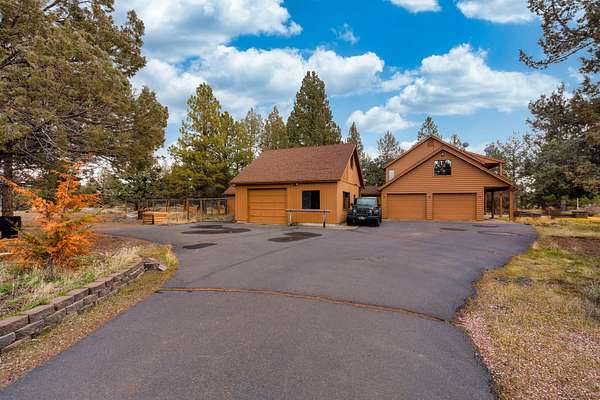 Est $5,151/mo5+ acre Sisters estate features a tree-lined paved driveway leading to a custom 4-bedroom, 2.5-bath home. The main house offers a functional layout with a pellet stove, exposed beams, a sunroom and is waiting your final finishing touches. Highly versatile and ready for horses and/or a hobby farm. Features include fully fenced grounds, underground sprinklers, a fire pit, a koi pond, and mountain views. Extensive outbuildings include a 2,000-square-foot pole barn perfect for RV and boat parking, plus a detached annex with a shop/garage, and a finished bonus room above. This retreat offers the ideal setup for those seeking a blend of private living, workspace, and outdoor utility.