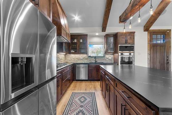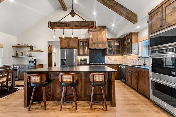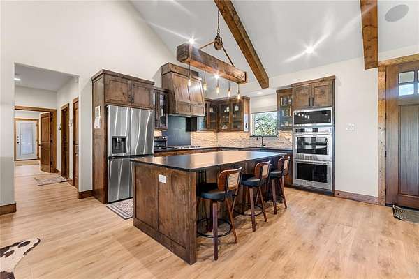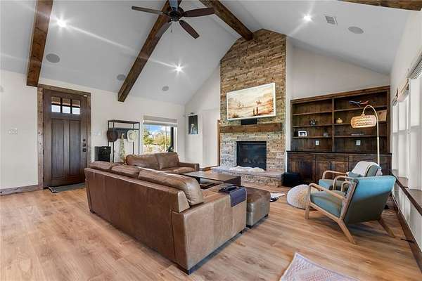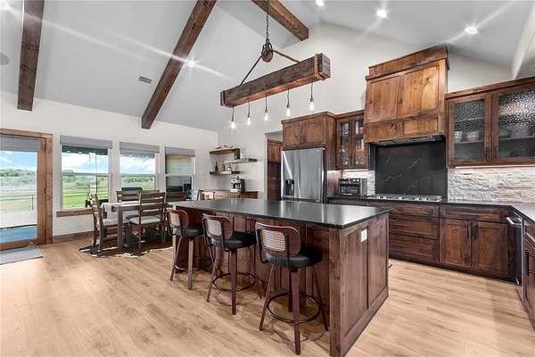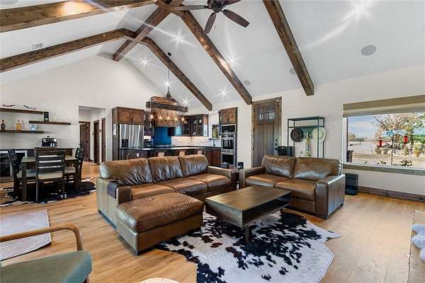 Welcome to your private country side retreat where comfort, craftsmanship and wide-open space come together on 22 breathtaking acres with over $120k in updates. Step inside to discover a stunning open concept living area highlighted by soaring vaulted ceilings, rich exposed wood beam and an abundance of natural light pouring in through oversized windows. The warm, inviting living room provides a relaxed atmosphere perfect for entertaining or unwinding after a long day. The heart of the home is a beautifully designed kitchen, complete with custom cabinetry, sleek countertops, stainless steel appliances and a spacious island with bar seating. A statement light fixture and rustic finishes add charm and character blending modern convenience with timeless style. The adjacent dining area offers plenty of space for gatherings, all while enjoying scenic views of the surrounding landscape. Throughout the home, details like wood accents, neutral tones and quality finishes create a seamless, elegant feel. Large windows frame peaceful views of the property bringing the outdoors in. Step outside and experience the true beauty of this property - 22 expansive acres of rolling land, ideal for recreation, livestock or simply enjoying the tranquility of nature. A stocked pond provides the perfect setting for fishing, relaxing or watching wildlife, making this property a true outdoor haven. Whether you're looking for a full time residence, a weekend escape, or a place to build your dream lifestyle, this property offers privacy, beauty and endless possibilities all in one exceptional package. And lucky for you, this package is listed below the appraised value.