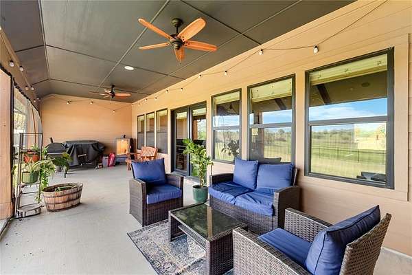 - Covered Patio/Porch, Fence, Lighting, Outdoor Living Center, Private Yard, Rain Gutters