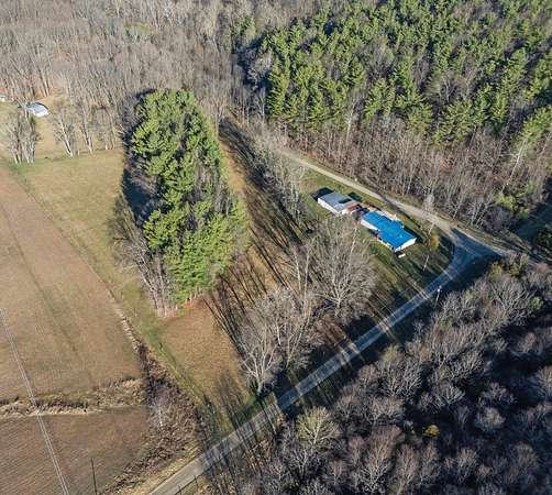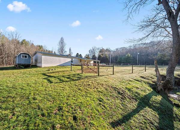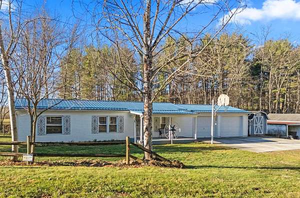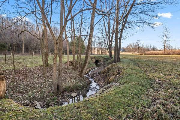 Single story/Ranch home with 4.43 Acres & a beautiful stream on the property & only 13 minutes from North Newark!! Picturesque meadow behind the house w/mature evergreen forest & ample space for outdoor enthusiasts including 2 fenced pasture areas & several outbuildings! Licking County shows it doesn't require flood insurance. Kitchen cabinets have been upgraded to oak & extra counter space added. Newer furnace in '17 & newer garage roof in '22. Home & garage have metal roofing. Garage has 2 car doors but technically oversized 1 car garage. Workshop has 220v service! Don't miss out on this rare opportunity to live the country life with a running stream!!!