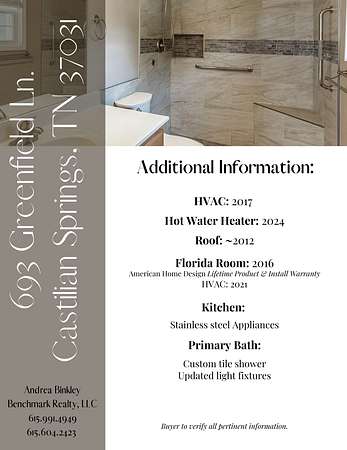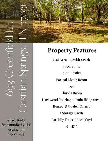 - Listed by Andrea Binkley, (615) 604-2423, Benchmark Realty