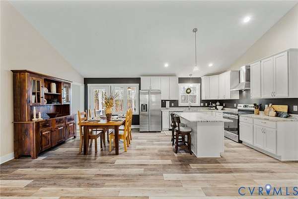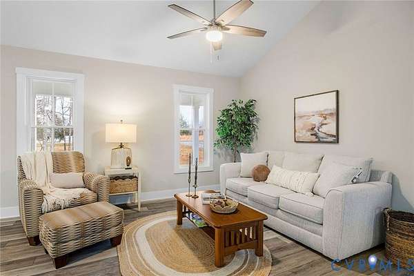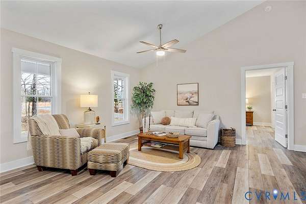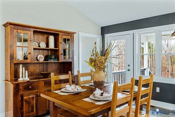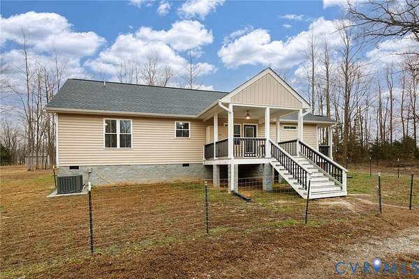 Nestled on 4 private, wooded acres at 693 Gully Tavern Road, this 2023-built, 3 bedr, 2 bath, ranch-style home offers 1,483 square feet of modern country perfection just minutes from the vibrant heart of Farmville. From the moment you step onto the expansive 23' x 8' front porch, you are welcomed into a bright, open-concept interior featuring vaulted ceilings, tall windows, and luxury vinyl plank flooring that flows seamlessly throughout. The heart of the home is a spacious kitchen equipped with stainless steel appliances, abundant cabinetry, and a breakfast bar that opens into an inviting dining and living area, making it an ideal space for both everyday comfort and lively entertaining. For maximum privacy, the primary suite is thoughtfully tucked away on one end of the home, boasting a full ensuite with a double-sink vanity and walk-in closet, while two additional bedrooms and a second full bath occupy the opposite wing. Practicality meets convenience with a dedicated mudroom and laundry area providing easy access to the backyard. Outside, the living space extends to a 13' x 11' covered back deck, where newly added stairs lead to a custom quad perimeter trail that winds through your private forest down to a peaceful creek bordering the property. Abundant opportunities for fishing & hunting. The grounds also feature newly added detached shed (2024) with attached lean-to perfect for storing firewood, tractors, or equipment, with a versatile drive-around layout for easy parking. Beyond your property line, you are perfectly positioned to local highlights, located just a short drive from the adrenaline-pumping zip lines of Sandy River Outdoor Adventure Park, the small-batch bourbon and live music at Sandy River Distillery, and the rich living history of Sailor's Creek Battlefield. Whether you are exploring the 32-mile High Bridge Trail, enjoying the free art at the Center for Visual Arts, or simply relaxing on your porch, this home offers an unparalleled blend of modern construction and a serene, rustic lifestyle.