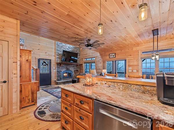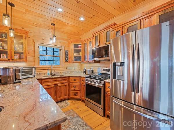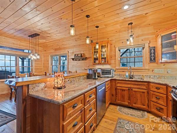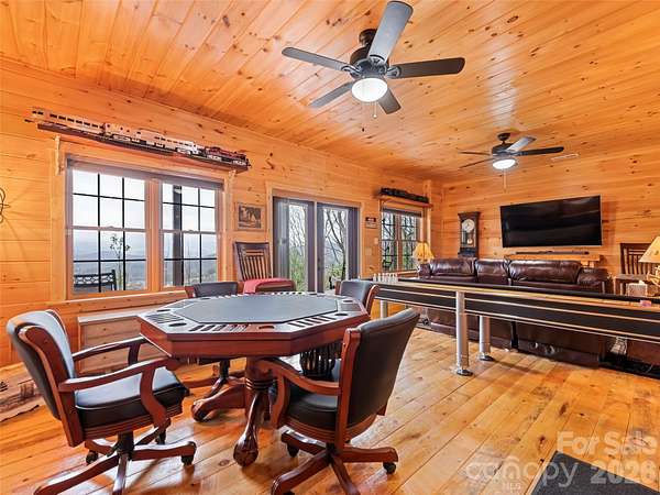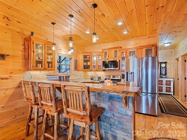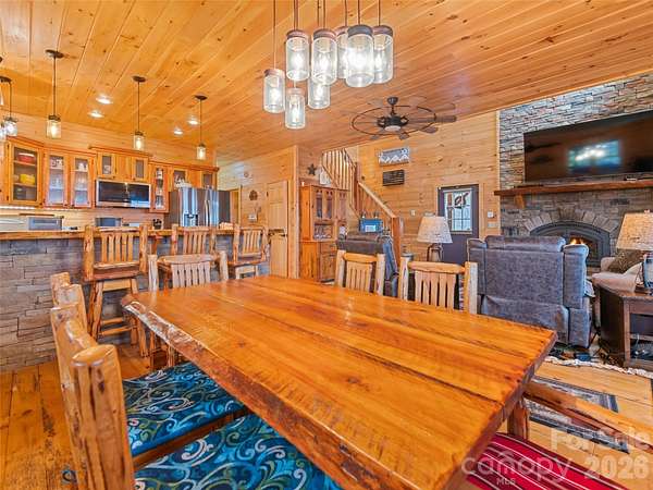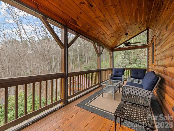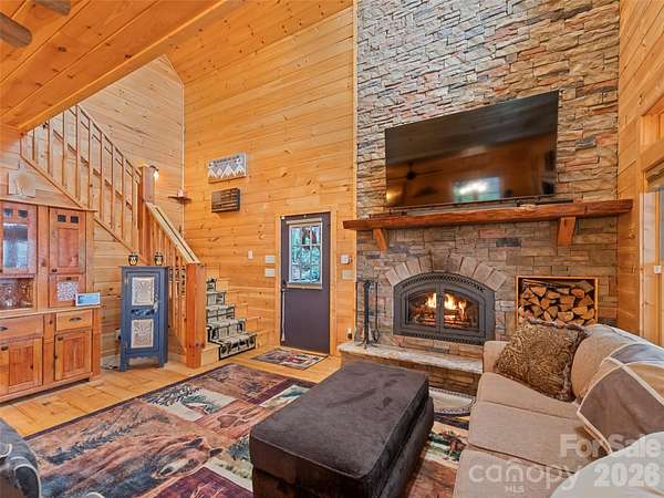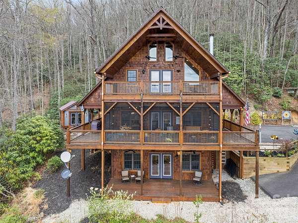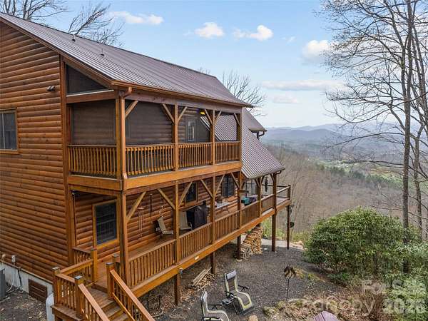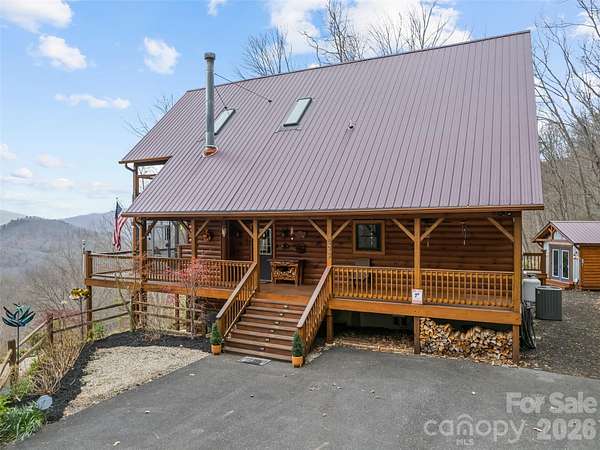 Never before offered, this thoughtfully designed and lovingly maintained 4 bedroom, 3.5 bath log cabin in the highly desirable High Splendor community of Robbinsville features layered mountain views to the west - perfect for incredible sunsets year round. Located just 10 minutes from town with fully paved access, this beautifully appointed home offers the perfect balance of convenience and privacy, giving you a peaceful, secluded feel while remaining close to modern amenities and the best of WNC's outdoor recreation such as Lake Santeelah, the Nantahala Gorge and Joyce Kilmer Forest. The home is well-situated on a 2.23 acre parcel, with complete control over your mountain view. With no detail spared, the cabin is offered truly turnkey, including all furnishings down to the cutlery, a shed stocked with tools, a generator, propane griddle and pellet-fed smoker - everything you need to start enjoying mountain living this season. Showcasing outdoor living, enjoy over 1,700 sqft of covered decking, including 420 sqft of screened-in space to take in the views comfortably in any weather. The interior is bathed in natural light, with impressive vaulted ceilings and rough-cut cedar flooring flowing throughout every level. The centerpiece of the open-concept main floor is the wood-burning stone fireplace, and a well-equipped kitchen with custom soft-close cabinetry, granite countertops and eat-in breakfast bar. The main level also features a laundry room/pantry, a full bath and two spacious bedrooms. Upstairs, the primary suite offers its own covered deck with stunning long-range views, a private screened porch, and an en suite bath with dual vanities and a walk-in tiled shower, while a generous secondary suite with full bath will provide exceptional comfort and privacy for your guests. The lower level is an entertainer's dream, complete with a luxury game room, a custom live-edge bar with a stocked mini fridge, walk-out patio access, a half bath and utilities closet. Outside, you'll find mature landscaping with succession planting, a shed/workshop for additional storage, a boulder-lined fire pit and private shooting range for the sportsman enthusiast. With too many details to list, come explore the property to see for yourself, you won't want to miss this rare opportunity to own your own peaceful mountain retreat - schedule a private showing today!