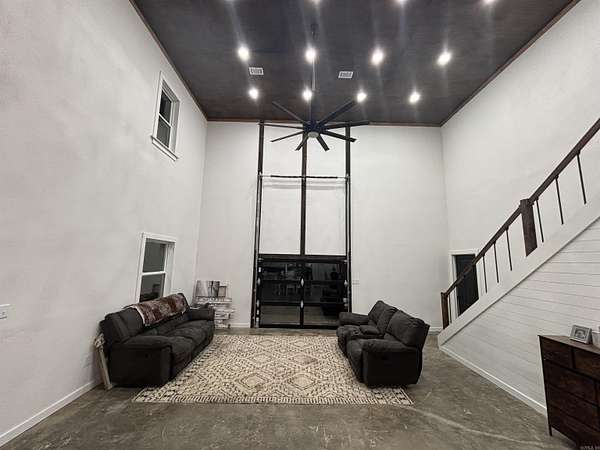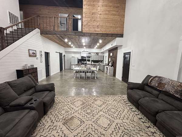 Barndominium style charm meets modern comfort in this spacious 4-bedroom, 3-bath, two-story home in the Jessieville School District! With approx. 2,800 sq ft, this unique property features a game room, office, mudroom, and an open living area ideal for entertaining. The kitchen and dining room showcase stunning tongue-and-groove wood ceilings, adding warmth and character. Upstairs, enjoy a cozy loft and balcony perfect for relaxing with a view. The master bed/bath offers a luxurious whirlpool tub for unwinding. The home sits on 13.09 scenic acres with a beautiful creek that flows into a stocked pond perfect for fishing or simply enjoying nature. A two-car carport and central heating & cooling add convenience and comfort. This one-of-a-kind property combines rustic style with modern amenities don’t miss your chance to own this beautiful property!