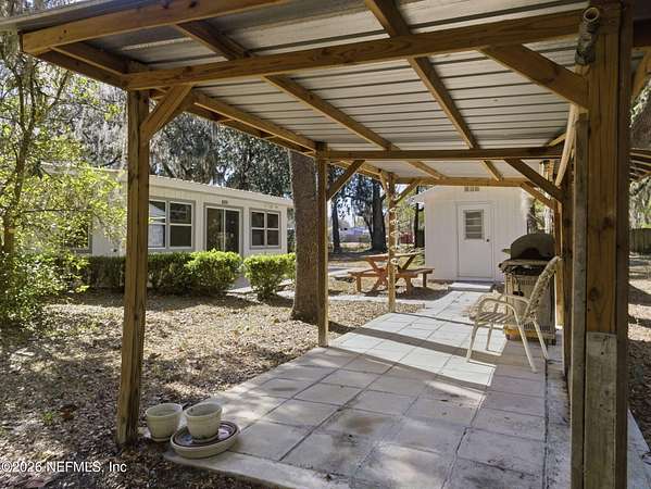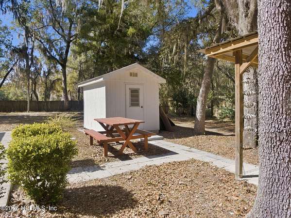 What an amazing value on this lovingly maintained home that has been in the same family for decades! 2.75 stately acres adorned with majestic live oaks await your dream garden, four-legged friends, farm animals, and more! Two massive outbuildings (one almost 1,700sqft and the other almost 1,800sqft) both have water and power. Turn one into your horse stalls and use the other for all your equipment. Plus, a newer shed with electric and metal roof is just off the rear patio for all your lawn tools. Turn it into storage or a workshop! The covered outdoor pavilion is the perfect place to relax with friends, BBQ, or enjoy a peaceful cup of coffee in the morning. When it is a little too chilly for outdoor sitting, the oversized attached Florida room has you covered! All of this while still being just minutes from all the conveniences of town. Plus, you're just 10 minutes away from the almost 6,000-acre Lake Santa Fe with its park and public boat ramp. Welcome Home!