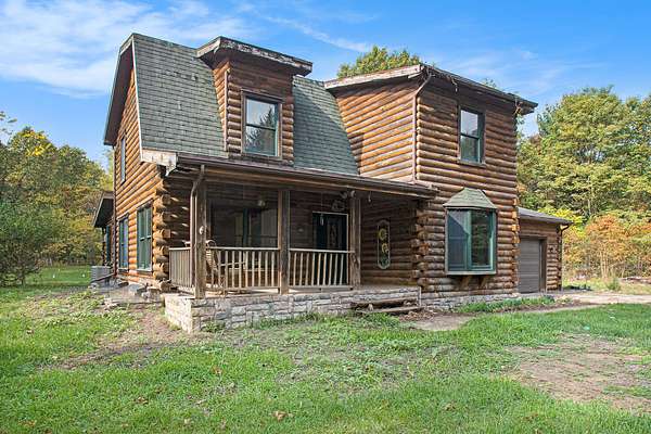 Bring your imagination - this spacious log cabin retreat is ready for its next chapter! Tucked away on 1.5 partially wooded acres in quiet Milton Township, this property offers privacy, character, and endless potential. Built in 2002, this 3-bedroom, 2 full bath, and 2 half bath home showcases the rustic charm of a traditional log cabin with the space and layout to make it truly extraordinary. Step inside and you'll find large windows that flood the home with natural light, a partially finished basement already equipped with egress windows and a half bath, and an open main level that's primed for your dream finishes. The kitchen has been cleared, giving you a blank slate to design the space exactly how you envision - from farmhouse modern to cozy cabin chic. All flooring and carpet have been removed (except tile), saving you demolition time and letting you start fresh immediately. The large 2-car garage and storage trailer that stays with the property provide plenty of room for tools, projects, or hobby space. After repairs, imagine relaxing on the expansive front porch or the screened-in back porch, surrounded by trees and birdsong in a peaceful country setting. You'll love the seclusion of the location while still being just minutes from downtown Niles, MI and Mishawaka, IN - the perfect blend of privacy and convenience. If you're an investor, contractor, or hands-on homeowner looking for a property with serious potential, this one checks all the boxes. A true diamond in the rough - bring your tools, vision, and creativity to make this log cabin shine again!