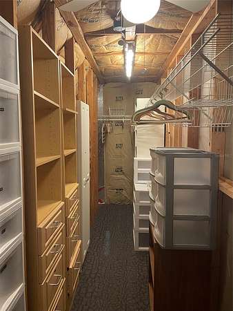 The apartment offers exceptional flexibility with multiple living spaces, bedrooms, kitchens, laundry rooms, and an upstairs suite with chair lift access. A former wall can easily be restored to create an additional bedroom upstairs.