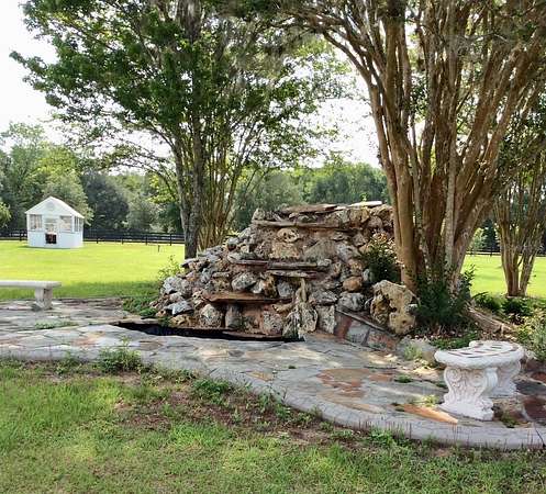 Outdoor highlights include a greenhouse with water and electric, an organic fruit orchard, patio space, waterfall with pond, extensive landscaping, RV hookup with electrical connection and dump station located at the rear of the apartment building, multiple garages and carports, and six outdoor water spigots.