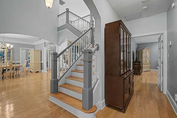 This beautiful, all-brick, move-in ready home is being sold by Agent-Owner. It sits on 1.61 tranquil acres surrounded by mature trees, offering the perfect blend of privacy and space. The floor plan supports multi-generational living, and its well-maintained open concept facilitates entertaining large crowds. Soaring ceilings in foyer, living room and family room. Cabinets galore. Each bedroom has its own private bath. Downstairs includes 2 bedrooms (including primary), 2 full baths, and one 1/2 bath. Eat-in kitchen with sitting room offers ample space for several cooks to enjoy intimate conversation while preparing their favorite meals. Spacious living, dining, and family rooms. Private office features double French doors and built-in bookshelves. Upstairs: 3 bedroom suites. 5th bedroom is currently being used as a second office. Huge, private back yard oasis is filled with oak trees and offers a peaceful, park-like setting. There is plenty of room for a pool. Large patio is a haven for bird watchers and patio flower gardeners. Whole-house Generac and sprinkler system. Recently painted inside and outside. New roof. Oversized 3-car garage offers space for parking and storage. Ample attic storage in garage and above back hallway ceiling. Property is conveniently located near restaurants, schools, and shopping.