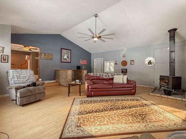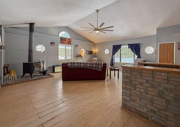 Tucked away on a private dead-end road and set on 5 peaceful acres, this 2-bed, 2-bath home offers privacy and seclusion while remaining conveniently located in the Edwardsburg School District. The spacious living room features a cozy wood-burning stove, creating a warm and inviting gathering space. The upper-level primary suite includes a private bathroom, generous walk-in closet, and a private deck overlooking - and providing access to - the backyard. A 24x40 pole barn offers excellent storage or workshop potential. The home features fiber internet through Midwest Energy, a hook-up available for a whole-house generator, and the propane tank will transfer with the property for added convenience.