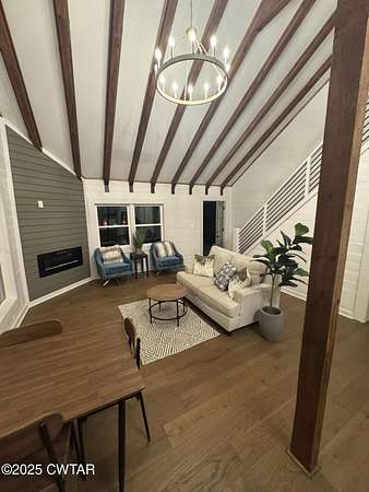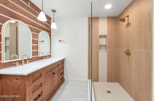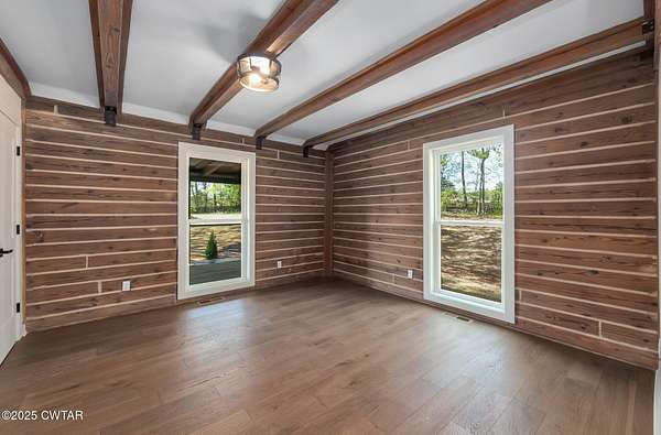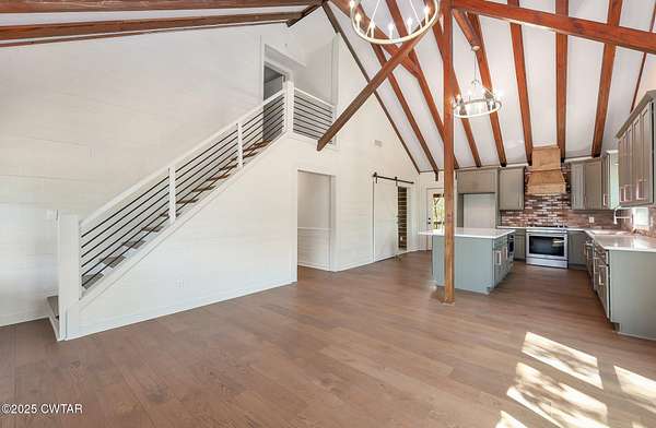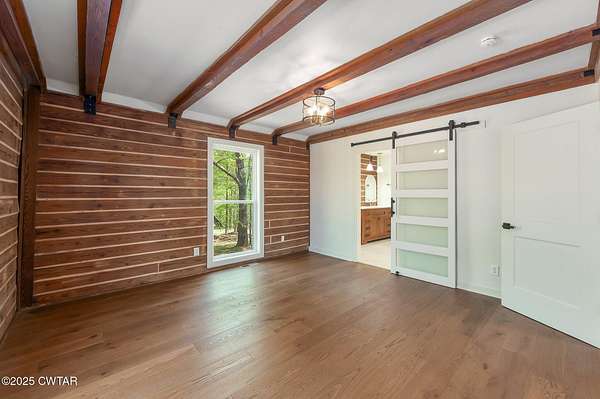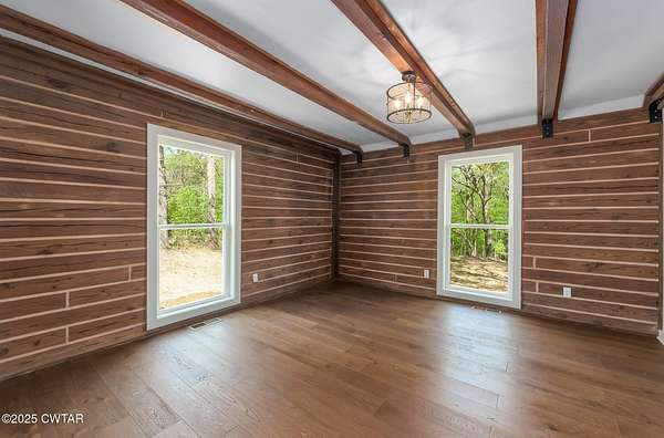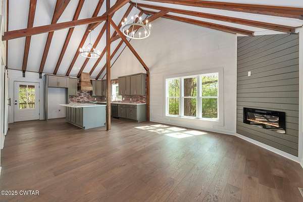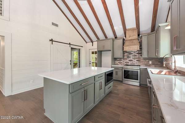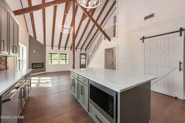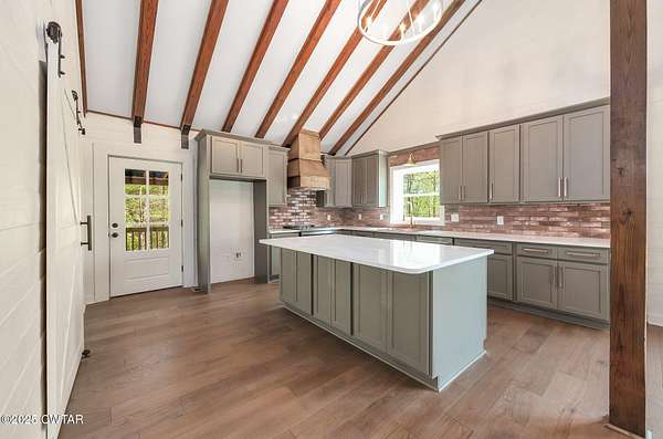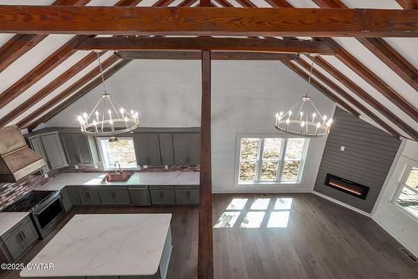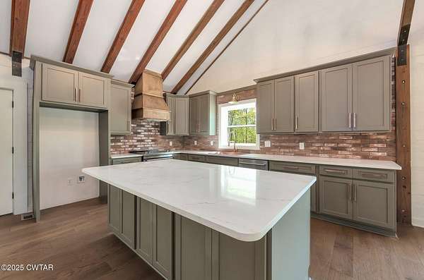 - Beamed Ceilings, Ceramic Tile Shower, Double Vanity, Kitchen Island, Tub Shower Combo, Vaulted Ceiling(s), Walk-In Closet(s)