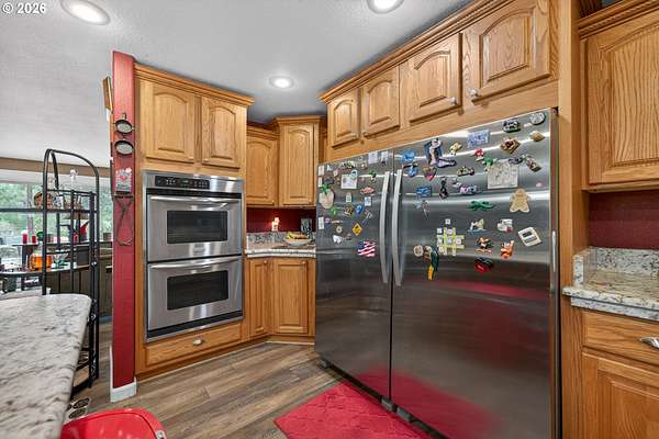 - Dishwasher, Double Oven, Free Standing Refrigerator, Granite, Induction Cooktop, Island