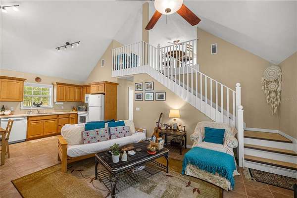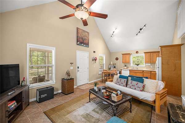 Step inside to an inviting open-concept floor plan featuring vaulted ceilings and expansive windows, which hosts 2 bedrooms, 2 bathrooms, and a large loft that is currently being used as a third bedroom, which overlooks the main living area and offers serene views of the surrounding woods from its private balcony. This home has a bright, airy layout and is ideal for full-time living or as a private getaway. Looking to be just down the street from the entrance to the Ichetucknee Springs, this is your retreat.