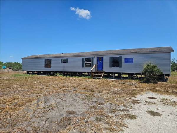 Est $687/moREDUCED!!! Country living just a short distance to Orange Grove, Corpus Christi, and Robstown. 2.5 Acres with 240 S.f. storage building. Well recently repaired and in good working condition. As is - 2014, 4/2, 1280 S.f. manufactured home included. Owner financing available. Condition of septic unknown.