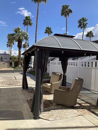 Est $705/moThis charming corner lot is situated adjacent to satellite B, boasting a large greenbelt beside the lot. Newly added 6' white vinyl fencing adds a touch of privacy. A shade gazebo with lights and curtains completes this wonderful lot, perfect for taking advantage of all ORPS has to offer. Take a drive by to view.