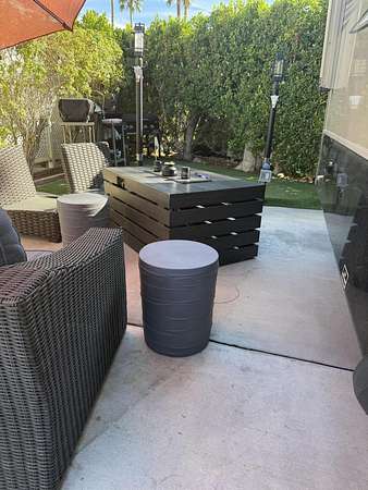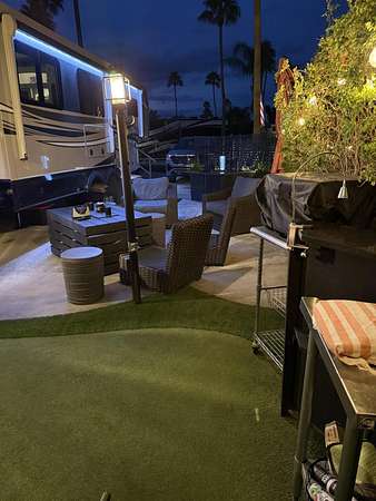 Currently offered at a highly competitive price of $59,000, positioning it as one of the most attractively valued properties available in the resort. Strategically located, the property offers direct and easy access to the community's satellite pool and additional recreational amenities. The lot itself features artificial turf, mature privacy hedges that ensure seclusion and an aesthetic appeal, and a charming, private putting green. These enhancements, combined with sophisticated lighting and privacy screens, cultivate an atmosphere of ambiance and appeal.