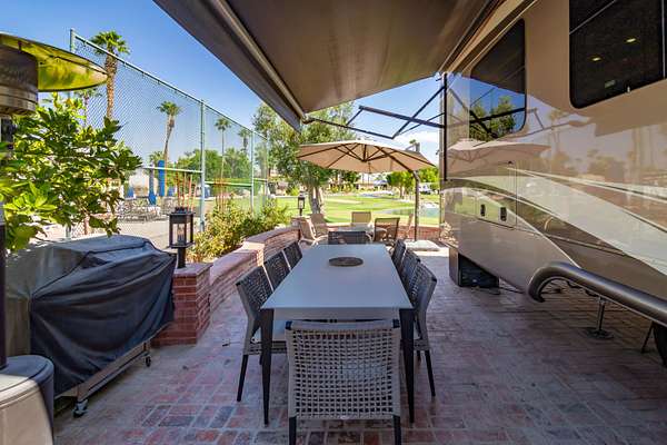 Presenting AN INCREDIBLE VALUE DEAL and exceptional turnkey opportunity within the prestigious Outdoor Resorts Palm Springs, offered at $249,000. This premium package includes both a meticulously maintained premium lot and a fully appointed luxury RV, delivering an effortless blend of comfort, lifestyle, and unparalleled views. Ideally situated to capture sweeping vistas of the lush golf course, surrounding mountains, and tranquil water features, this property offers a serene and elevated desert living experience. The spacious RV features a well-equipped kitchen, a comfortable living room, a dedicated dining area, one bedroom, and one full bath-providing all the essential elements for either full-time living or a seasonal retreat. Every detail has been thoughtfully maintained, ensuring a move-in ready, hassle-free ownership experience from day one. Located within one of the Coachella Valley's most sought-after resort communities, owners enjoy access to top-tier amenities including golf, tennis, pickleball, fitness facilities, pools, and a vibrant social atmosphere. Outdoor Resorts Palm Springs is a gated, luxury RV resort known for its impeccable grounds and prime location. This is a unique opportunity to own in one of the desert's finest communities, combining exceptional value, desirable views, and resort-caliber living. Schedule your private tour today to experience this outstanding property firsthand.