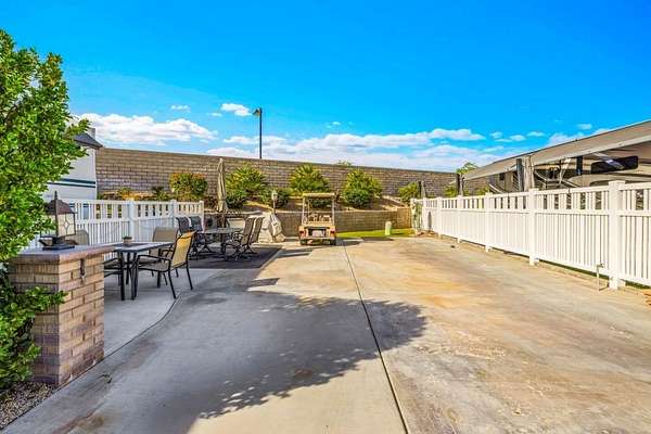 Est $630/moLot 129 along the highly sought-after west wall, directly across from the breathtaking immaculate front 18 golf course. This truly enviable location offers a daily spectacle of serene landscapes, perfect for those seeking tranquility and beauty. A significant, value-privacy fencing on both sides of property. Easy to care for landscape. Mature, maintained plants contributing to an established, manicuredf aesthetic appeal. This is complemented by low-maintenance landscaping that ensures effortless beauty throughout the seasons. Finish with a touch o