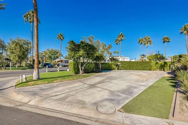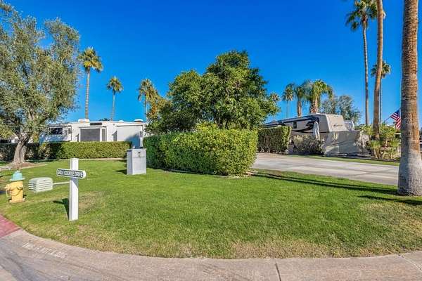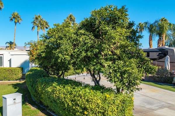 A newly available corner property priced at $89,000. This highly desirable lot is situated in one of the resort's most popular and convenient locations, offering exceptional proximity to key amenities. Residents will appreciate being mere steps away from both the ES clubhouse and the Golf Starter Shack. The property offers charming and mature landscaping, which includes three distinct fruit trees: tangerine, lemon, and orange, adding a unique and vibrant touch. The surrounding grounds are meticulously maintained, featuring beautifully manicured shrubbery and established plantings that contribute to the lot's overall picturesque appeal. Accent lighting further enhances the ambiance during evening hours. Complete with professionally installed artificial turf and expanded concrete areas, designed for low maintenance and maximized functional space.