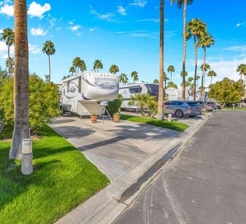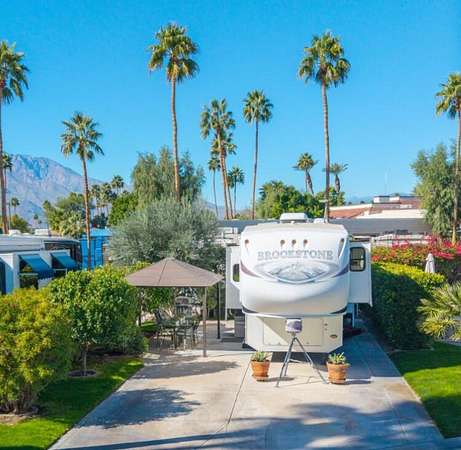 This delightful resort property truly presents a fantastic opportunity. It's perfectly situated on a charming, quiet street, offering a tucked-away feel that's both private and peaceful. Walking distance to La Palma Clubhouse, placing all its amenities and social activities just moments away. Close proximity to the resort's main entrance ensures exceptionally smooth and convenient access for all your comings and goings. One side of the lot features a white fencing providing a lovely backdrop and potential for climbing vines. The mature landscaping is beautifully contained within sturdy brick planters, offering a wonderful selection of trees including an olive tree, alongside three citrus trees - a grapefruit, an orange, and a lime . Adding a splash of color and delightful fragrance, three flowering trees complete this property. This outdoor space comes fully equipped for relaxation and entertaining. An aluminum gazebo is already in place, offering both fabric shades for sun protection and integrated screens for comfortable, bug-free enjoyment throughout the day and evening. Adjacent to this inviting space, a dining table with four chairs awaits al fresco meals and gatherings. A high-quality 4-burner gas grill is included, perfect for preparing delicious outdoor meals. To help maintain a tidy and organized space, two convenient storage boxes are provided, ideal for cushions or outdoor essentials. Lastly, three charming terracotta flower pots are ready for your personal touch, whether with vibrant seasonal blooms or fragrant herbs.