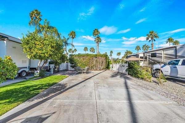 Prime location- directly opposite the fruit tree orchard. This unparalleled location offers a unique blend of serene natural beauty and a tranquil environment, providing a truly captivating backdrop for your next adventure. This proportioned lot has been thoughtfully developed, an ideal harmony between a well-maintained grassy area and expanded concrete surfaces. This versatility offers endless possibilities, whether you envision a private garden oasis, an expansive outdoor entertainment space, or the perfect foundation for future enjoyment. White privacy fencing is already in place, ensuring a semi private and intimate setting. Complete with a table and four comfortable chairs, is included, inviting immediate enjoyment of your morning coffee. Representing remarkable value, this property is priced for a prompt sale, presenting an ideal chance to invest in a highly desirable location with immediate usability and possible significant potential for future appreciation