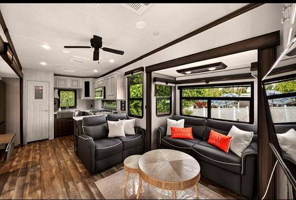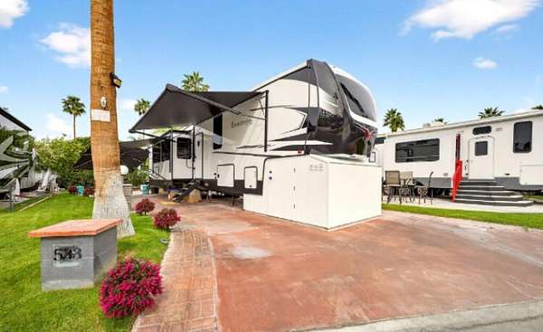 I am delighted to introduce you to an unparalleled opportunity for sophisticated resort-style living, nestled within the highly sought-after Outdoor Resort Palm Springs. Located steps away from the pool, spa, restroom and laundry facilities. This premier, all-age luxury RV community offers an exquisite blend of exceptional recreational facilities, vibrant social engagements, and the stunning natural beauty of the desert landscape. It's not just a location; it's a complete lifestyle experience. Lot 533 includes a meticulously maintained 2023 Forest River luxury RV. This particular model offers comfort and thoughtful design, featuring a single bedroom and 1.5 baths, engineered for seamless full-time functionality. Its pristine condition and array of modern enhancements truly set it apart as a turnkey opportunity. Inside, the private primary bedroom serves as a serene retreat, an automatic queen-size bed for adjustable comfort. The accompanying spacious primary bathroom is a spa-like sanctuary, boasting an expansive walk-in shower, a contemporary bidet, and a stylish dual-sink vanity, providing ample space. An additional half-bath offers the convenience of a stacked washer and dryer unit, and both toilet facilities are permanently connected to the main sewer line, ensuring effortless living. The inviting living area is designed for both relaxation and entertaining. It features two loveseats, one convertible into a pullout bed, ideal for accommodating overnight guests, two additional lounge chairs, a dining table for two, and practical coffee tables. Throughout the RV, you'll discover an abundance of thoughtfully integrated storage solutions, maintaining a clean and organized space. This exceptional 2023 Forest River RV, coupled with the world-class amenities and vibrant community atmosphere of the Outdoor Resort, represents an extraordinary value. It is currently offered significantly below the current market, presenting an unparalleled chance to immerse yourself in luxurious desert living without compromise.