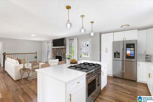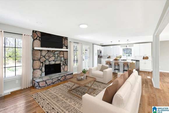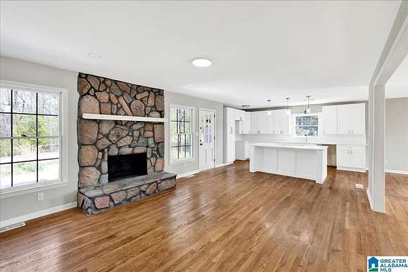Welcome to 6942 Roper Road, a stunningly renovated home on 8 beautiful acres! This amazing property features 4 spacious bedrooms and 3 stylish baths, perfect for families or guests. Relax on the inviting front porch while enjoying the lovely views of the small lake across the street. Inside, you'll discover gorgeous new floors, modern bathrooms with large walk-in showers, and a sleek kitchen that's a dream for cooking and entertaining. The cozy living room and family room each boast a charming wood-burning fireplace with stacked stone, creating the perfect atmosphere for gatherings and cozy nights in. Located just minutes from the Trussville Entertainment Center, this home offers the ideal blend of peaceful country living and exciting city life. Don't miss your chance to make this incredible retreat your own!
