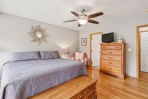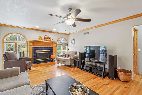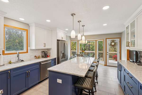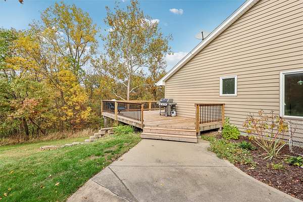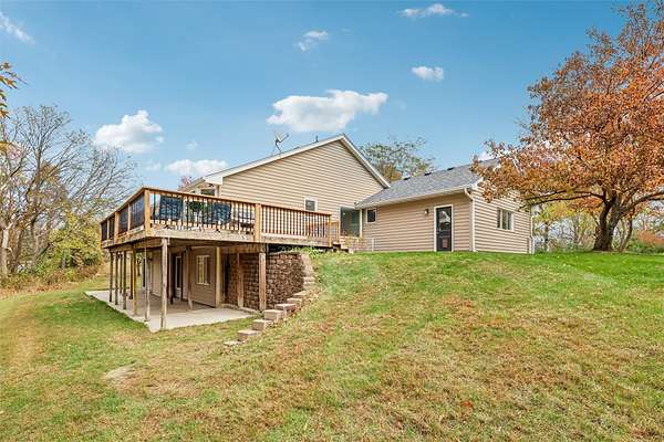 Hard-to-find 4 BR ranch on 4.67 acres in Pine Ridge Estates! Lots of room to build an ADU / or large detached outbuilding or something else. This spacious home offers over 1,600 SF on the main level plus a finished lower level and a 4-car attached garage with a 25' deep stall perfect for a boat or toys. The newly remodeled kitchen features abundant storage, a large island, and generous eat-in space. The semi-private layout offers freedom from an open-concept mess-ideal for entertaining. Hardwood floors flow through the main level, which also includes a flexible front room with French doors (office or 4th BR), formal dining room (2nd office option), and a half bath. The primary suite features a jacuzzi tub, shower, double vanity, walk-in closet, and new full back deck overlooking peaceful timber. The finished lower level includes 2 BRs, a 3/4 bath, 2 storage rooms, a huge rec room, and a wet bar. Updates include - see attached list with seller disclosure. Enjoy the shared stocked pond, paved roads, and easy commute to Des Moines. Indianola Schools. There is a concrete pad NW of the home for a shed to be built on if wanted.