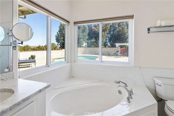 The main residence offers 2,736 sq. ft. of elegant yet comfortable living space, with 3 bedrooms, 3 bathrooms, and a spacious 3-car garage. The gourmet kitchen -- a dream for any cook -- flows easily into the open living and outdoor spaces, making entertaining effortless. Step outside to a sparkling pool and a covered patio complete with a grand fireplace and cooling fans -- the perfect spot to unwind as the sun dips below the vines.