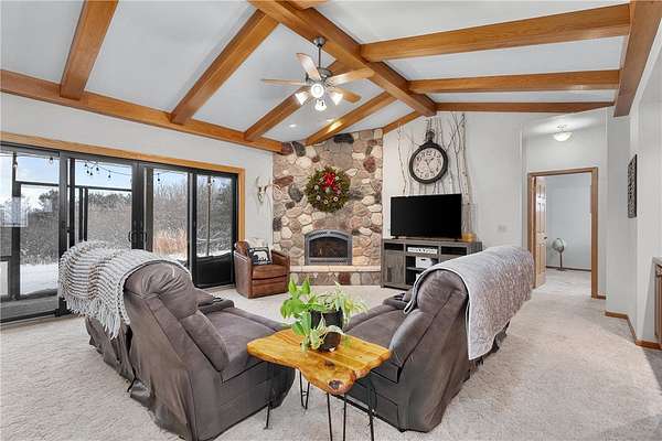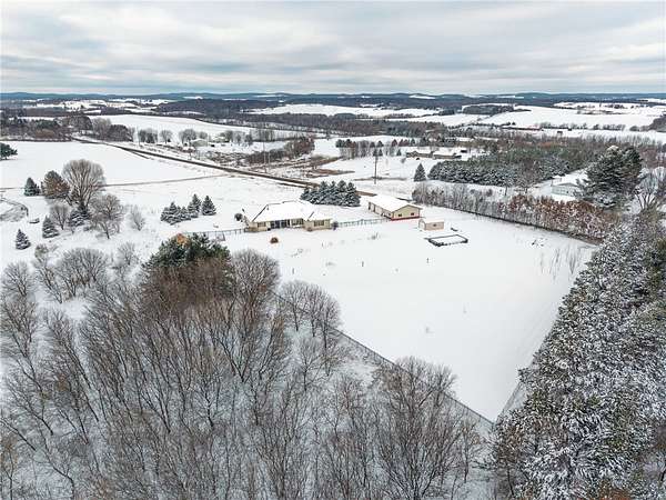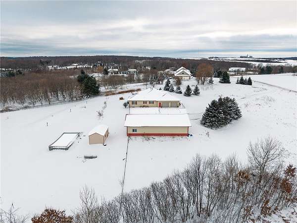 Welcome to this beautifully maintained 4 bedroom 2.5 bathroom ranch in the Town of Wheaton on just over 5 acres- discover peaceful country living just minutes from Chippewa Falls and Eau Claire with easy access to Highway 29. The main floor features a bright, open layout with generous living, dining, and kitchen areas and even has a central vac system! All living area, bedrooms, and amenities including laundry are on the main level with a very spacious primary suite and a newly updated walk-in closet. The huge completely open lower level is a blank canvas- perfect for future finishing with endless possibilities. Recent updates include a brand-new furnace, new light fixtures and ceiling fans, new fridge, a beautiful screened-in back patio with brand new sliding doors perfect for relaxing and enjoying the private fully fenced backyard. Two car attached garage is heated and has hot & cold water spigots. Additional one car garage door in pole shed building along with the main double overhead door- plenty of room for cars, boats and equipment. Pole Building (30'x52'x10') includes an in-floor heat system. Take advantage of the charming and convenient outdoor amenities like the 15,000 gallon 32x16 above-ground pool, additional storage shed with electric (10'x20'), lawn sprinkler system, and extensive new plantings including berry patches, grapes, four apple trees, two cherries, and a plum tree! Conveniently located in Chippewa Falls with Wheaton taxes. Move-in ready with room to expand!