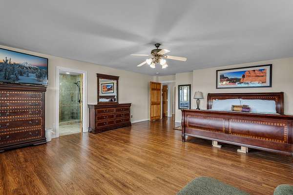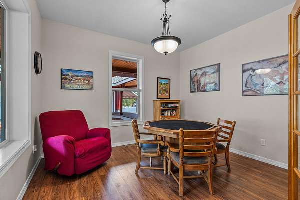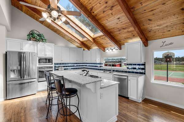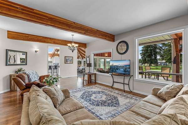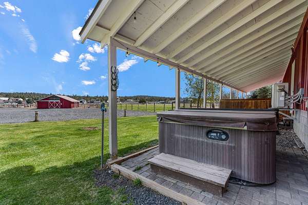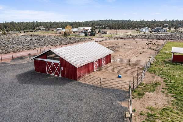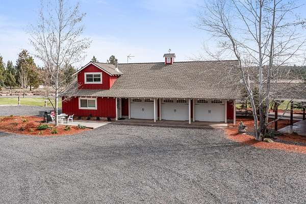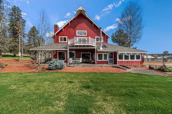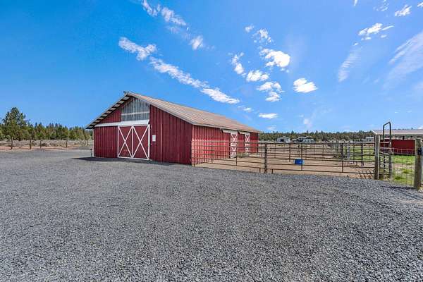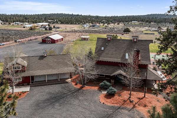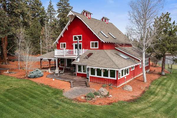 Nestled in Central Oregon, is the Red Barn Farm in Sisters,Oregon, offering a blend of rustic charm & modern amenities. This 4,279 sq ft primary residence, is complemented by a 1,000 sq ft mother in- law suite, for a thoughtful design and functionality. Main house boast 4 spacious bedrooms (3 are Ensuite) and 4.5 baths, providing ample space for family and guests on 5.77 irrigated acres. Main floor houses 1 master and an office. The ADU, has a full kitchen, lg living room, 2 bedrooms, 2 baths, and climate control mini-splits. It offers versatility as a guest suite, rental opportunity, or private retreat. The property's exterior is equally impressive, featuring a 3-stall barn,tack room, & storage for hay & equipment. Automatic underground sprinkler & irrigation systems, a reliable well and a septic system. It has pet-friendly floors, a fully fenced yard, and an outdoor kennel. Currently operating as a successful short-term rental on Airbnb it provides a steady income for the owner