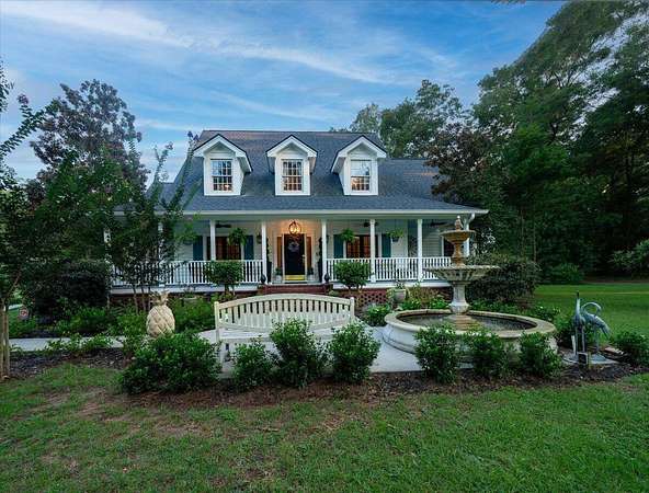 Welcome to 6949 Maybank Highway located on Wadmalaw Island. This beautiful estate offers 9.74 Acres of Land and a home consisting of 3967 sq. ft. of thoughtfully designed living space. Home features 4 bedrooms and 2 1/2 baths of luxury living. It's 2 story Cape Cod design has a full front porch which beckons you to sit and enjoy the sounds of the water fountain. You are sure to enjoy the birds, squirrels, deer, and hawks spotted on property. This home is an entertainers delight. Upon entering you will find a formal dining room and living space. The family room is 2 story and features a Romeo & Juliet Balcony, as well as a woodburning fireplace. The Owners Suite is located on the first floor with 2 walk-in closets. The kitchen features quartz countertops and features professional GradeAppliances (Bertazoni) From Italy. Upstairs are 3 more bedrooms, bath, Library/Office which leads to a balcony overlooking the land. If the interior isn't enough to impress, head on out to the 1/4th acre stocked pond, light up the custom made brick fireplace, visit with the chickens or enjoy the fruit from the fig, peach, apple, olive tree, pecan trees, persimmon, black berries, blueberries, loquat and mulberry trees. The estate has been certified by the National Wildlife Federation as a certified wildlife site. There is a 3 car garage with covered breezway to home, an additional 43x32 garage featuring 2 10ft doors and 2 standard with electric. Estate offers endless possibilities for gardening, entertaining, or horses. Property is short drive to world class dining & shopping of historic downtown Charleston and Kiawah Island. Easy access to 2 beaches and the Charleston International Airport. The Cherry Point Boat Landing is right around the corner as well as The Cherry Point Seafood for fresh caught Shrimp for dinner. A Bonus to property is there are no HOA dues/fees. Agent is Related to the Owner.
