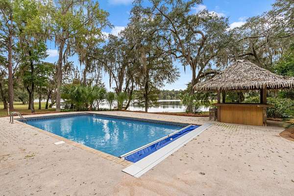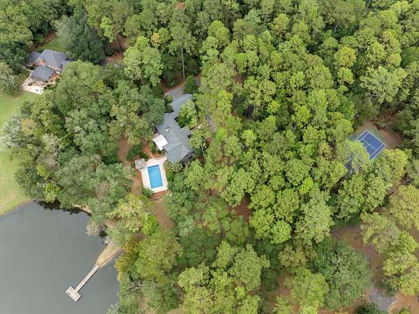 One or more photo(s) has been virtually staged. Set on 6.28 acres with direct access to Lake McBride, this property offers a rare blend of space, recreation, and comfort. Outdoor highlights include a saltwater pool with cabana, private dock, and a tennis court that also works perfectly for pickleball. Inside, the home features 5 bedrooms-nearly all with their own baths-a chef's kitchen, sunroom, and multiple living and dining spaces. The split floor plan places the primary suite upstairs with a private library or office and access to the screened porch, while the finished basement includes three additional bedrooms, a kitchenette, dining area, and family room with fireplace. A three-car garage with abundant storage and an attached gym, laundry rooms on each floor, and a new roof (2025) add to the appeal. Just minutes from Bannerman Crossings, this lakefront retreat offers both everyday convenience and vacation-style living.