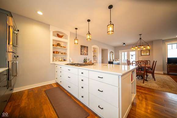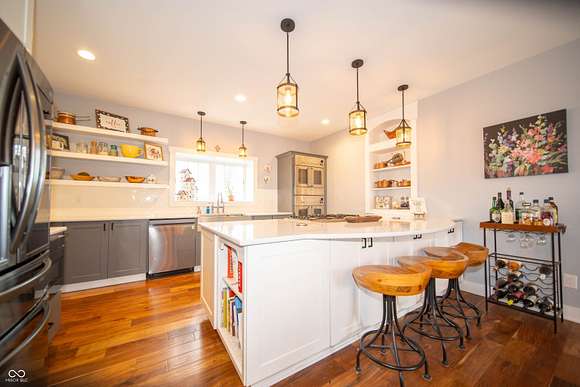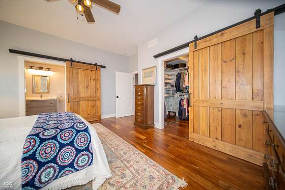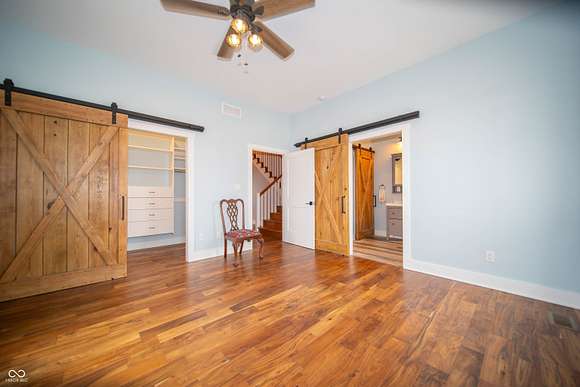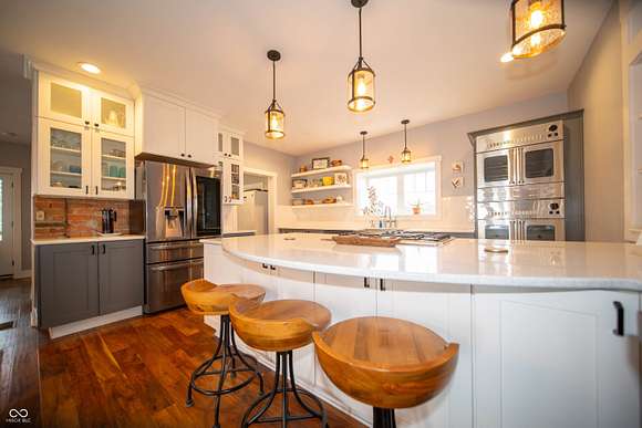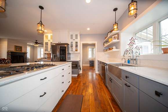 1860 School House Converted into a Stunning Traditional American/Craftsman Homestead. This Historic Property includes a 5 Bedroom (2 Main Floor Primary Bedrooms Suites, 5 Bath, 8.76 Acres, 6 acres of which is pasture. 30x30 Attached Finished Garage, Breezeway w/ Floor Drain, Separate Garage/Workshop and 2 Livestock Barns. Open/Commercial Kitchen with Custom Cabinetry, LG Appliances, Breakfast Bar, Granite Countertops, Custom Tile, Dual Blue Star Gas Ovens, Bosch Gas Range and new Built-In Microwave. Mechanical/Features - Dual Trane HVAC Systems w/Humidifier, Tankless Gas Water Heater, Anderson Windows, Generac Back-Up Generator, Kohler Fixtures, Oversized Craftsman Trim Package & Water Softener System. Open Great Room/Dining Room (Original Brick Wall from 1860, Exposed along the oversized Custom Stairway to Upstairs as well), with Dual Fuel Fireplace and Built in Shelving, Dual, Main Floor Primary Bedrooms with Walkin Showers, Soaking/Jetted Tub, A Lot of Custom Storage thru-out this home. (Closets by Design, Closet Organizers) Akacia Hardwood Flooring. Separate Pantryoff the Breezeway and Office (Original Hardwoods from 1860's). Main Floor Laundry Room, with Utility Sink, Upstairs Guest Bathroom has Washer and Dryer (Dual Fuel) too. Upstairs Guest Room with Dual Vanity and Walk-In Closet. Property incudes Asparagus, Thornless Blackberries and Raspberry Patch, Separate Well at the Windmill could be a water source for livestock. If you are looking for a rural location for horses, 4-H or just for the great location, 1 Mile from Western Boone Junior/High School, Easy Access to I-65, Indy or Lafayette and The Leap Innovation District (Eli Lilly and Meta) this home is for you. Big 4 Trail, Stone Eater Bike Park and Trophy Club Golf Course all within a few miles of the Homestead. The Owner did an incredible job with this renovation and restoration. Truly a once